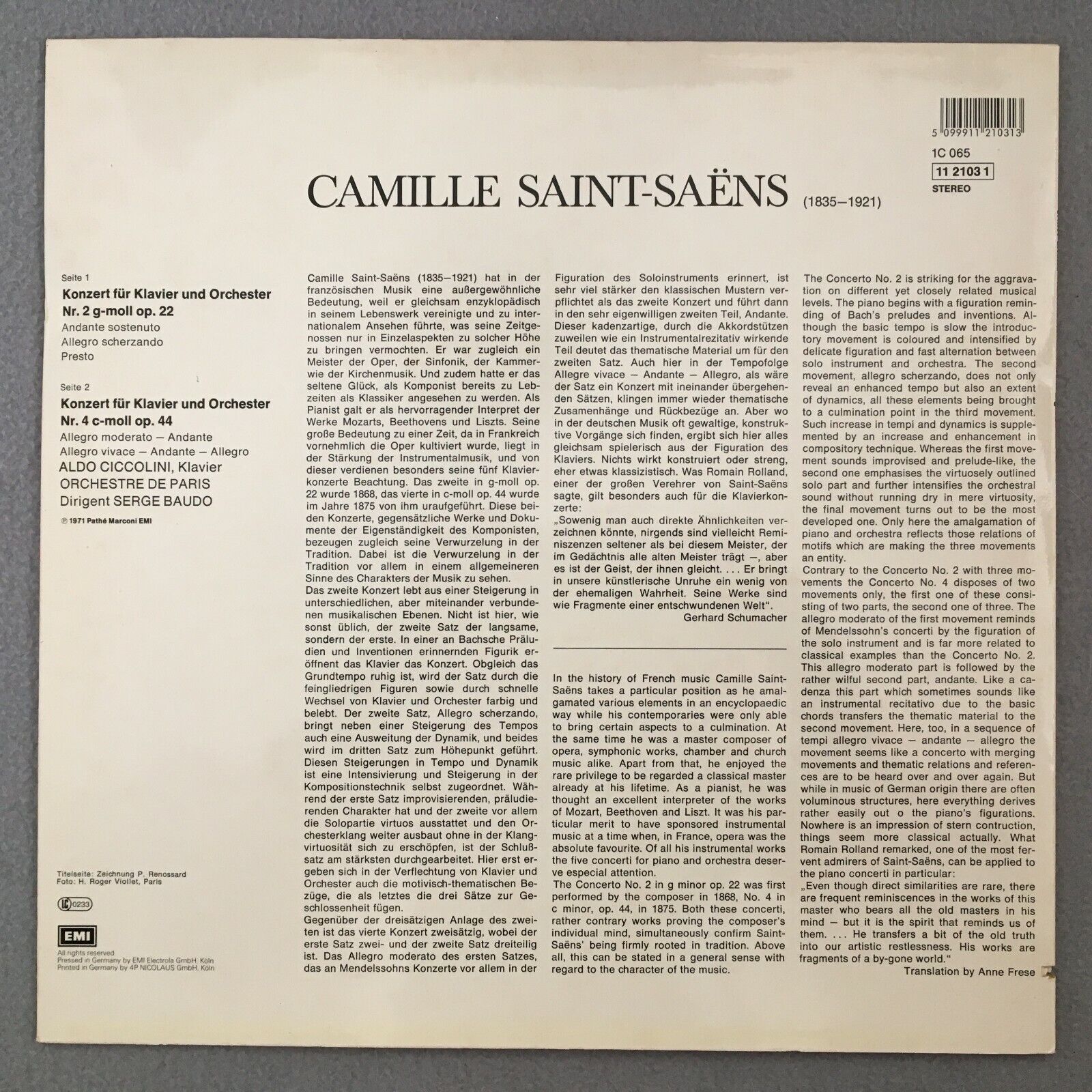 S132 Saint-Saens Piano Concerto Ciccolini Baudo EMI 1C 065 11 2103 1 Stereo