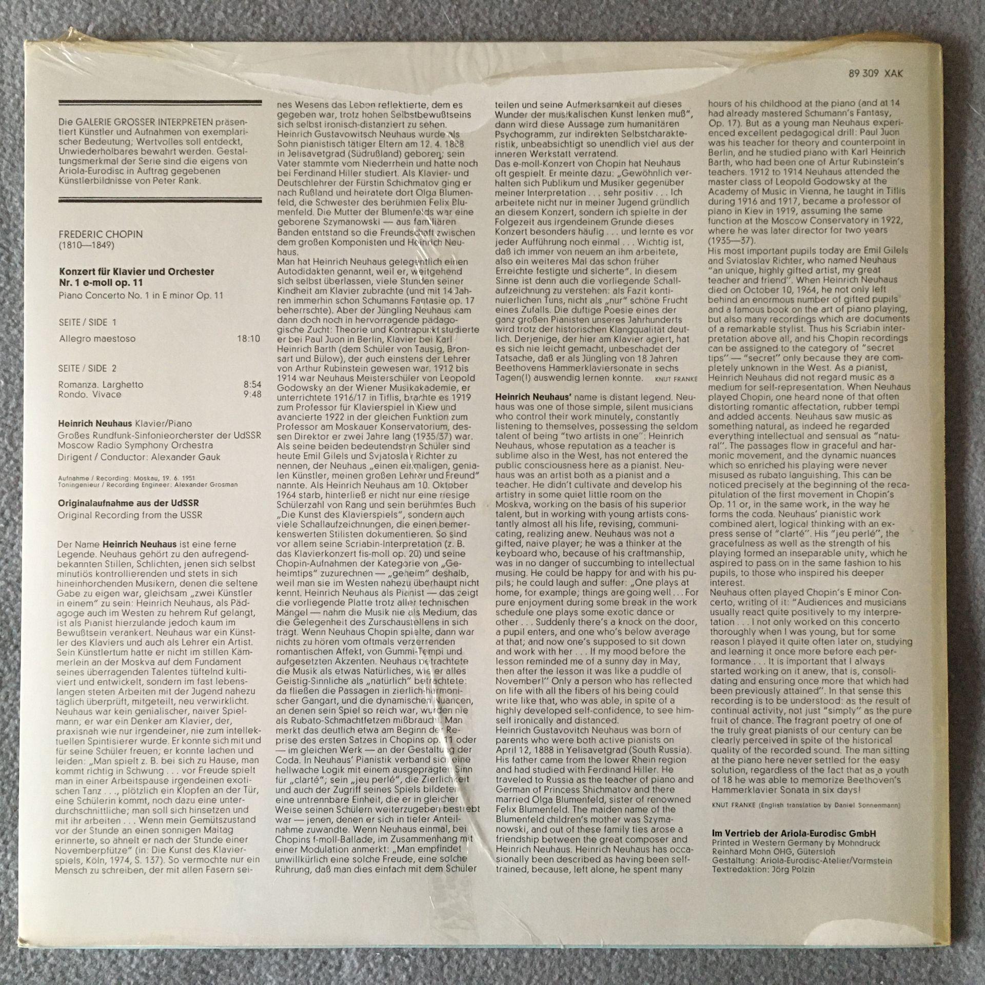 A028 Chopin Piano Concerto Neuhaus Gauk Melodiya 89 309 XAK Stereo SEALED