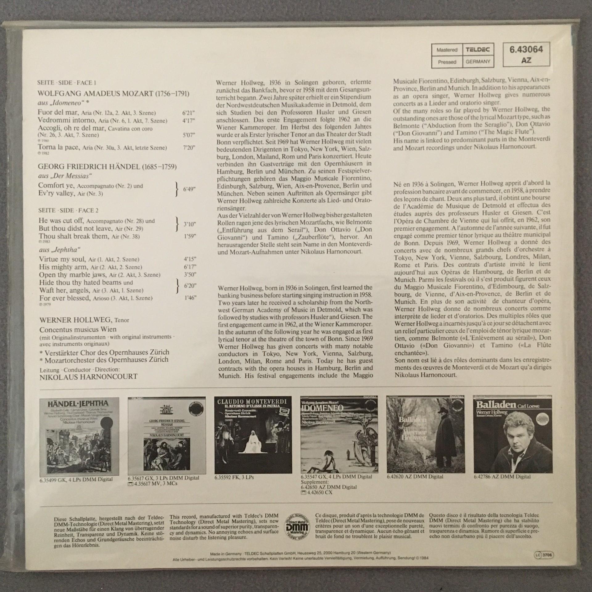 A043 Hollweg Idomeneo Messiah Harnoncourt Teldec 6.43064 AZ Digit Stereo SEALED