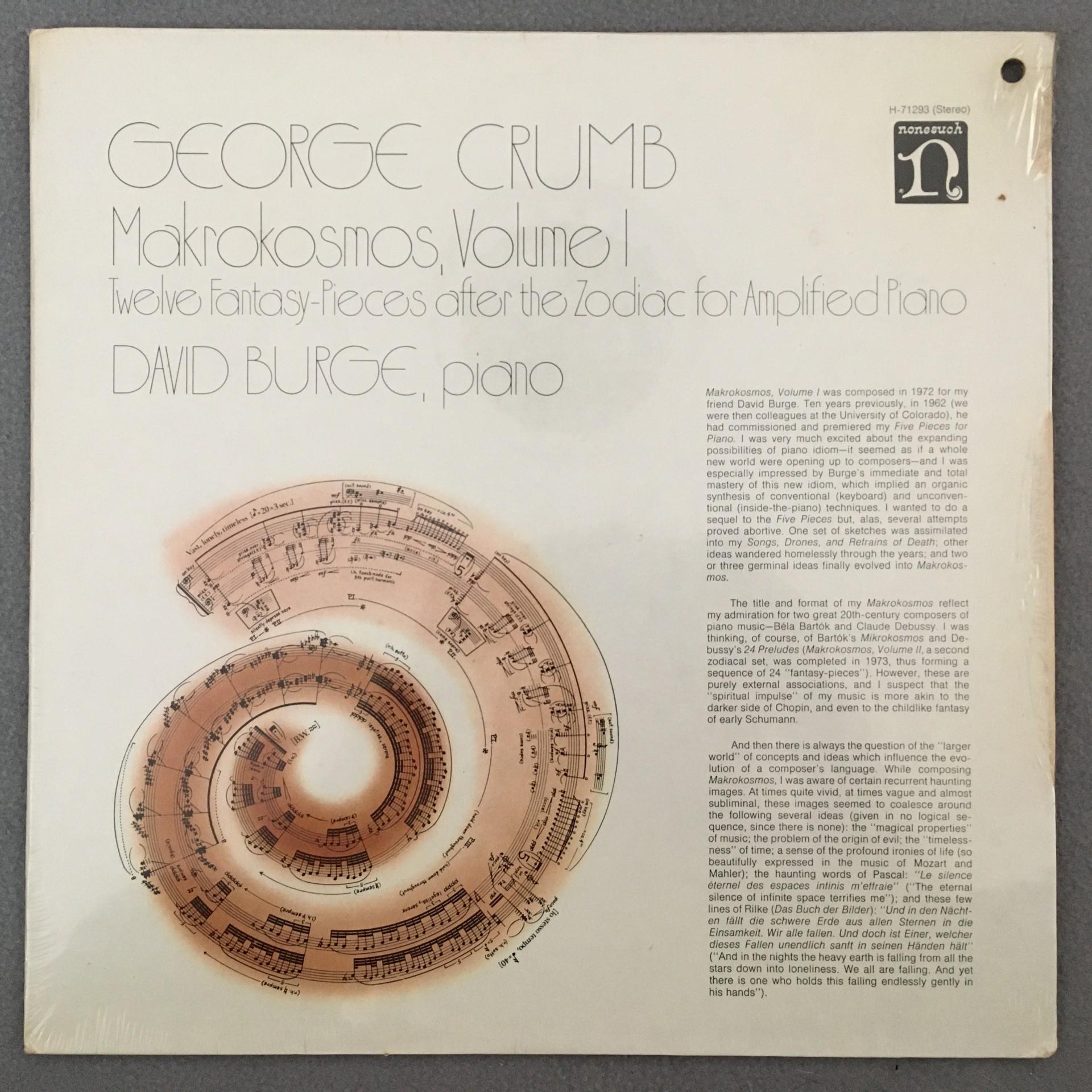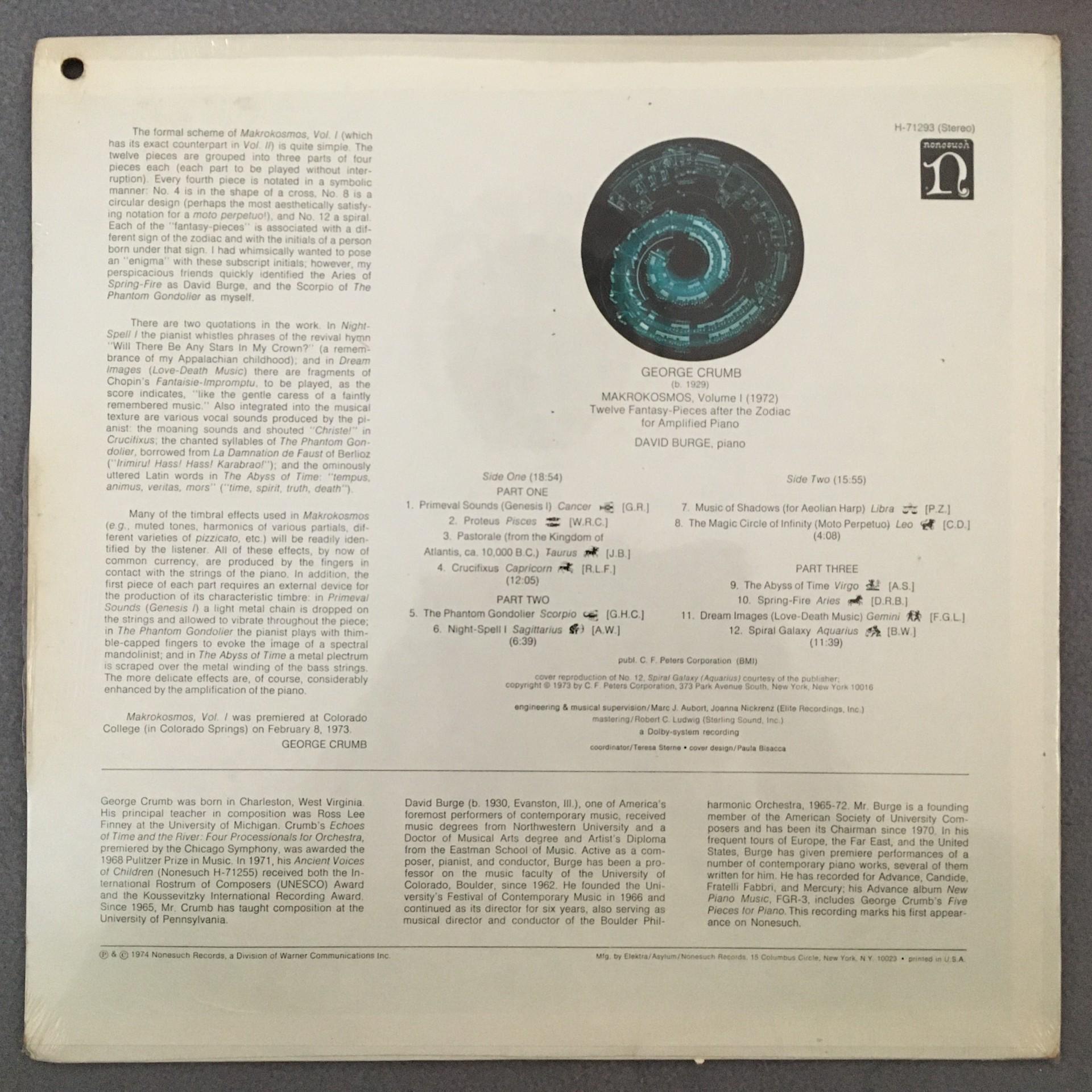 A065 Crumb Makrokosmos Vol.1 Burge Nonesuch H-71293 Stereo TAS Listed SEALED