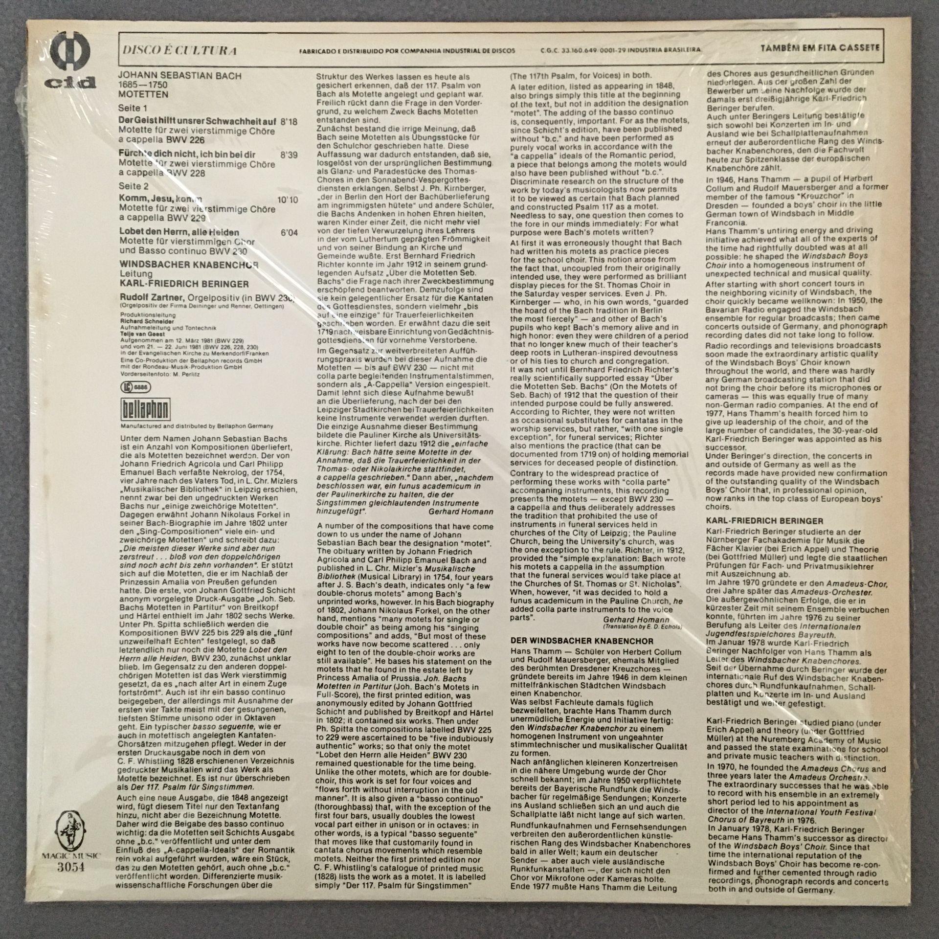 A073 Bach Motets Windsbacher Boy´s Choir Bellaphon 3054 Stereo SEALED