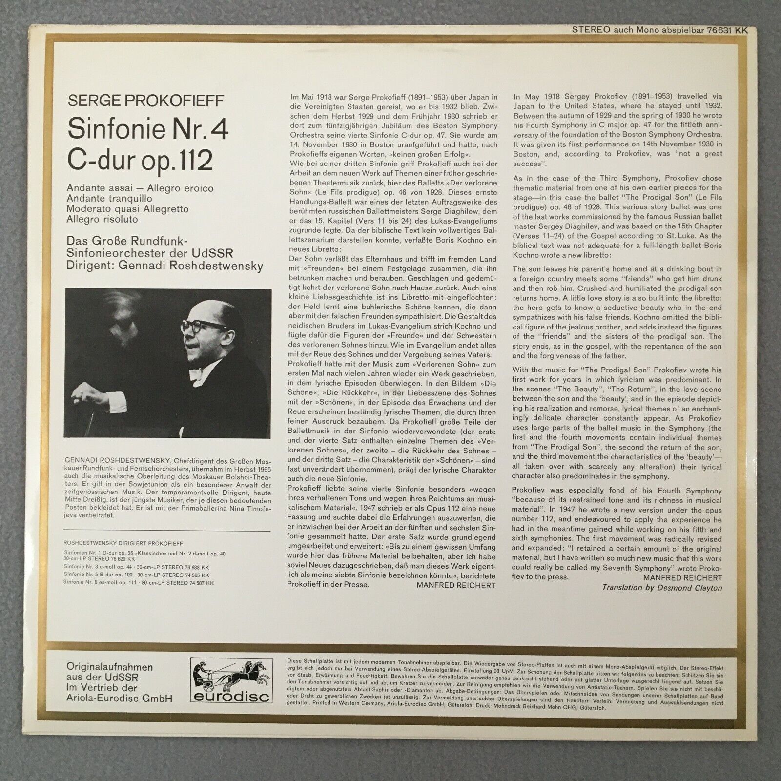 S888 Prokofiev Symphony No.4 Rozhdestvensky Eurodisc 76 631 KK Stereo