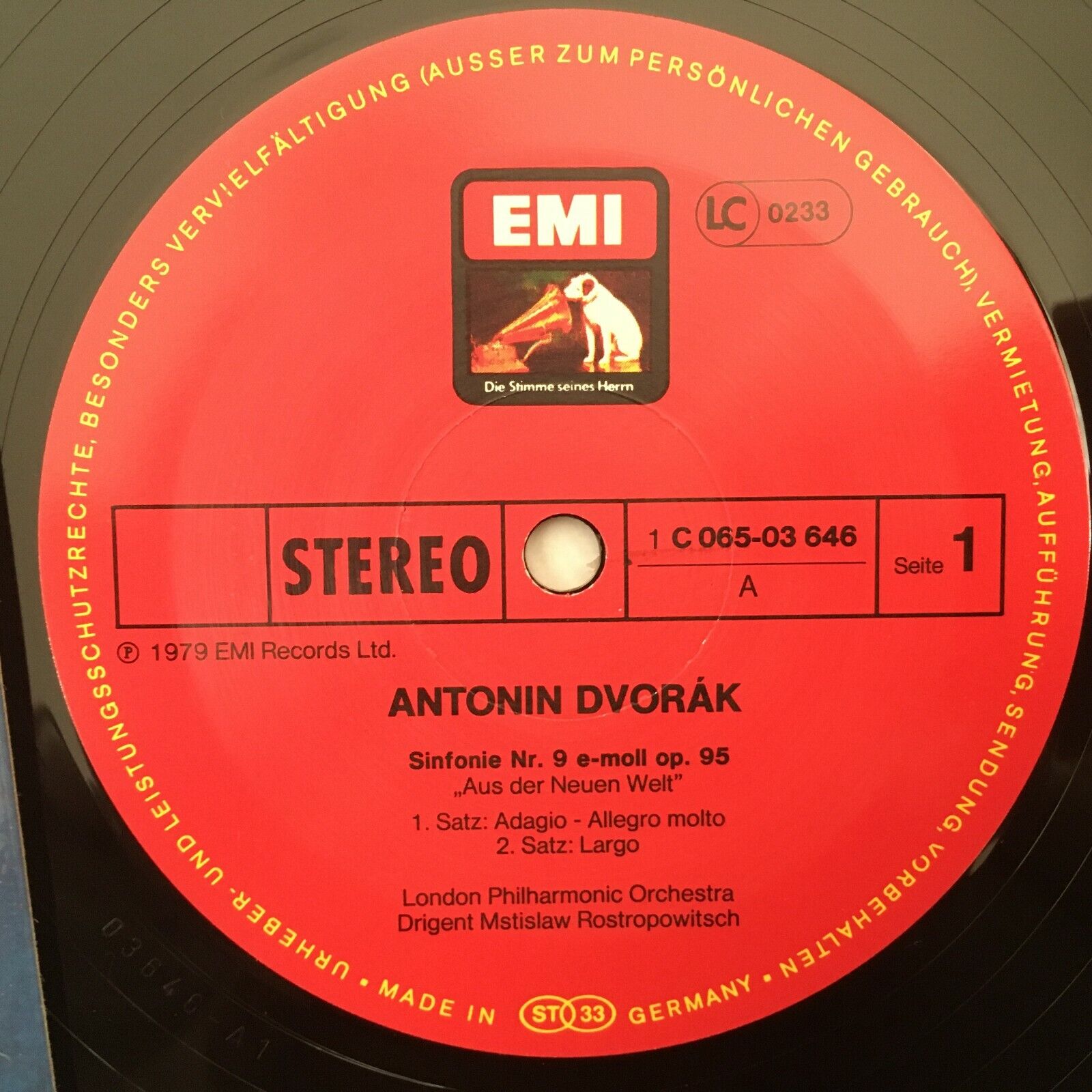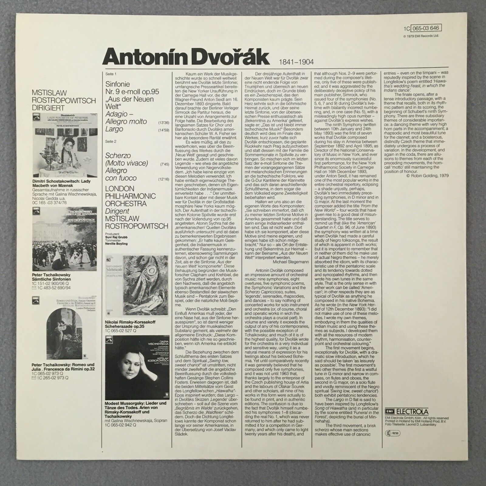 S887 Dvorak Symphony No.9 Rostropovich LPO EMI 1C 065-03 646 Stereo