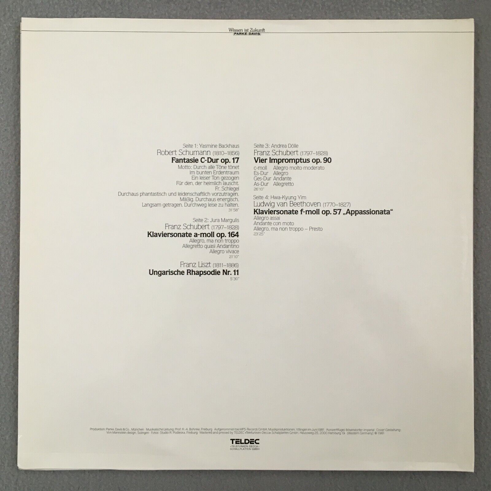 S886 Parke-Davis Förderpreis Beethoven Schumann Liszt 2LP Teldec 66.28212 Stereo