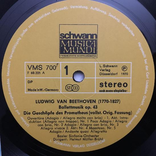 N987 Beethoven Ballet Music Müller-Brühl 2LP Schwann VMS 700/701 Stereo