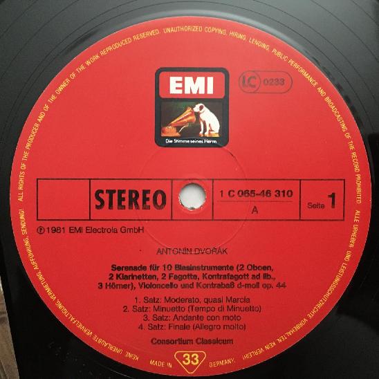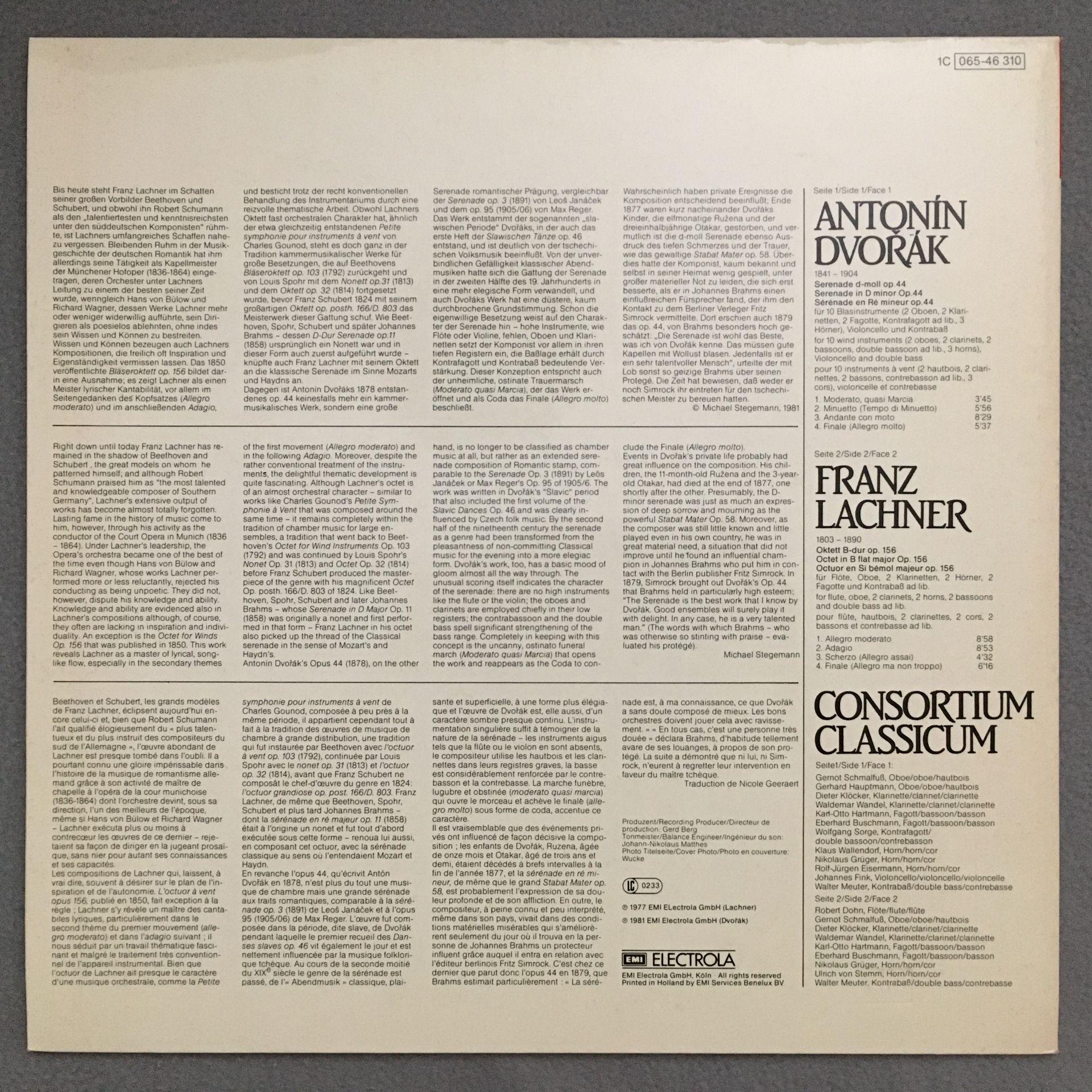 O030 Dvorak Serenade Lachner Octet Consortium Classicum EMI 1C 065-46 310 St