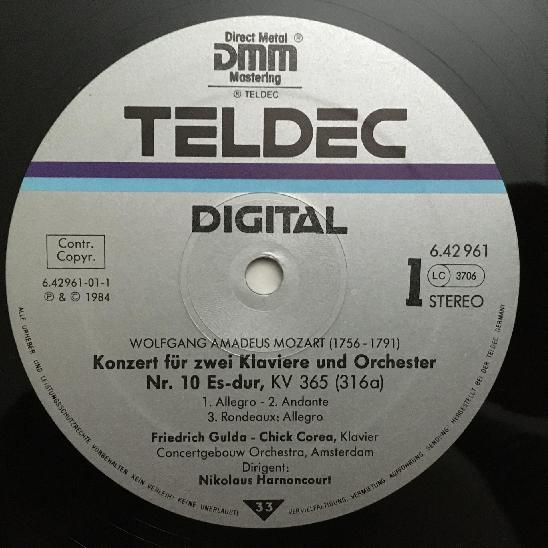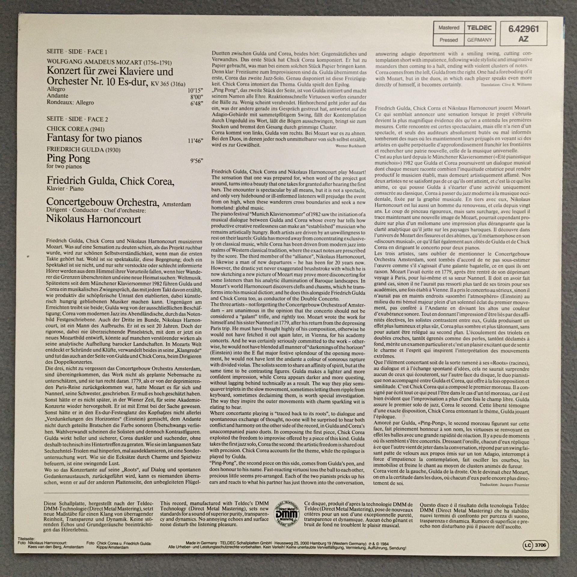 R633 Mozart Double Concerto Corea Gulda Harnoncourt Teldec 6.42961 AZ Digital