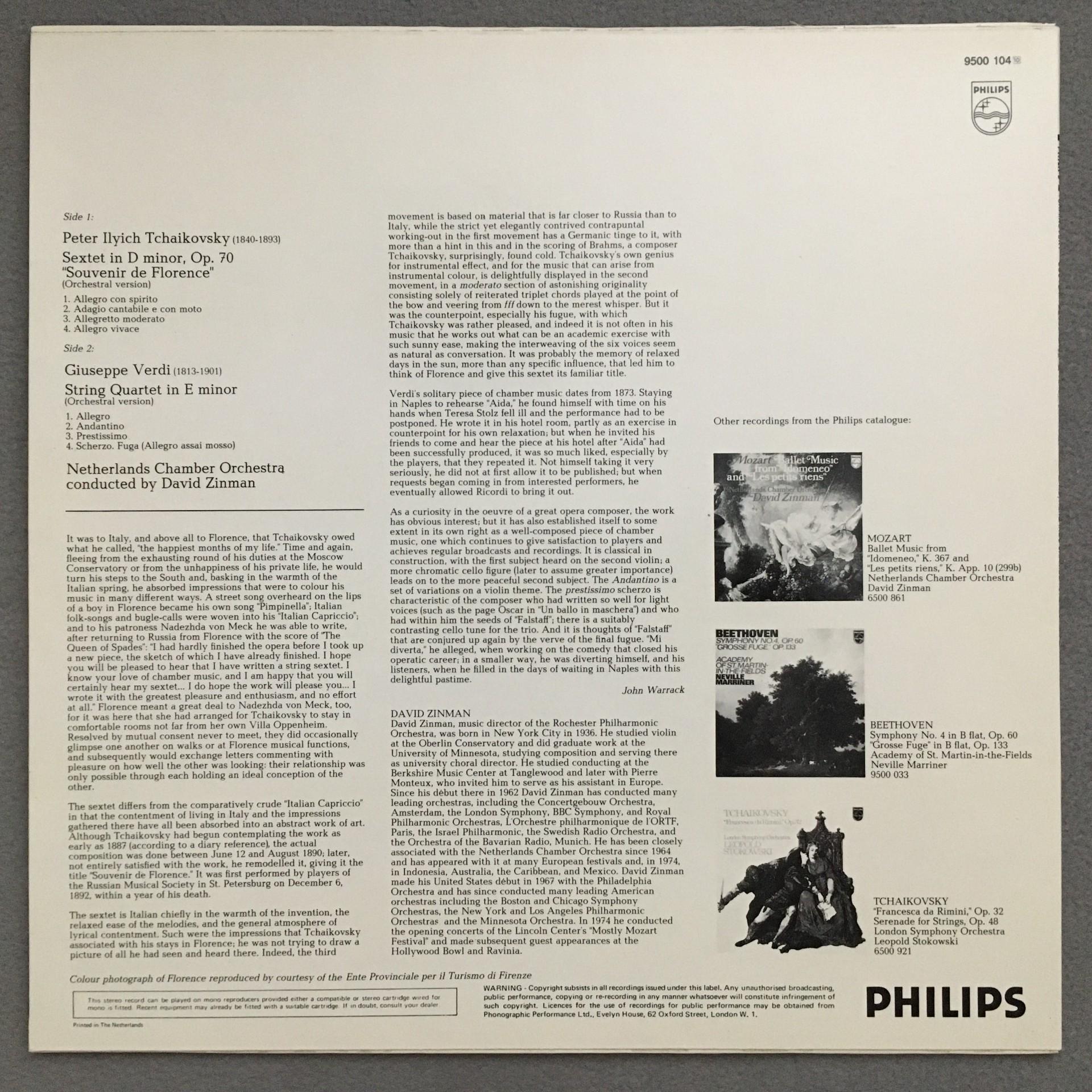 R635 Tchaikovsky Sextet Verdi String Quartet Zinman Philips 9500 104 Stereo