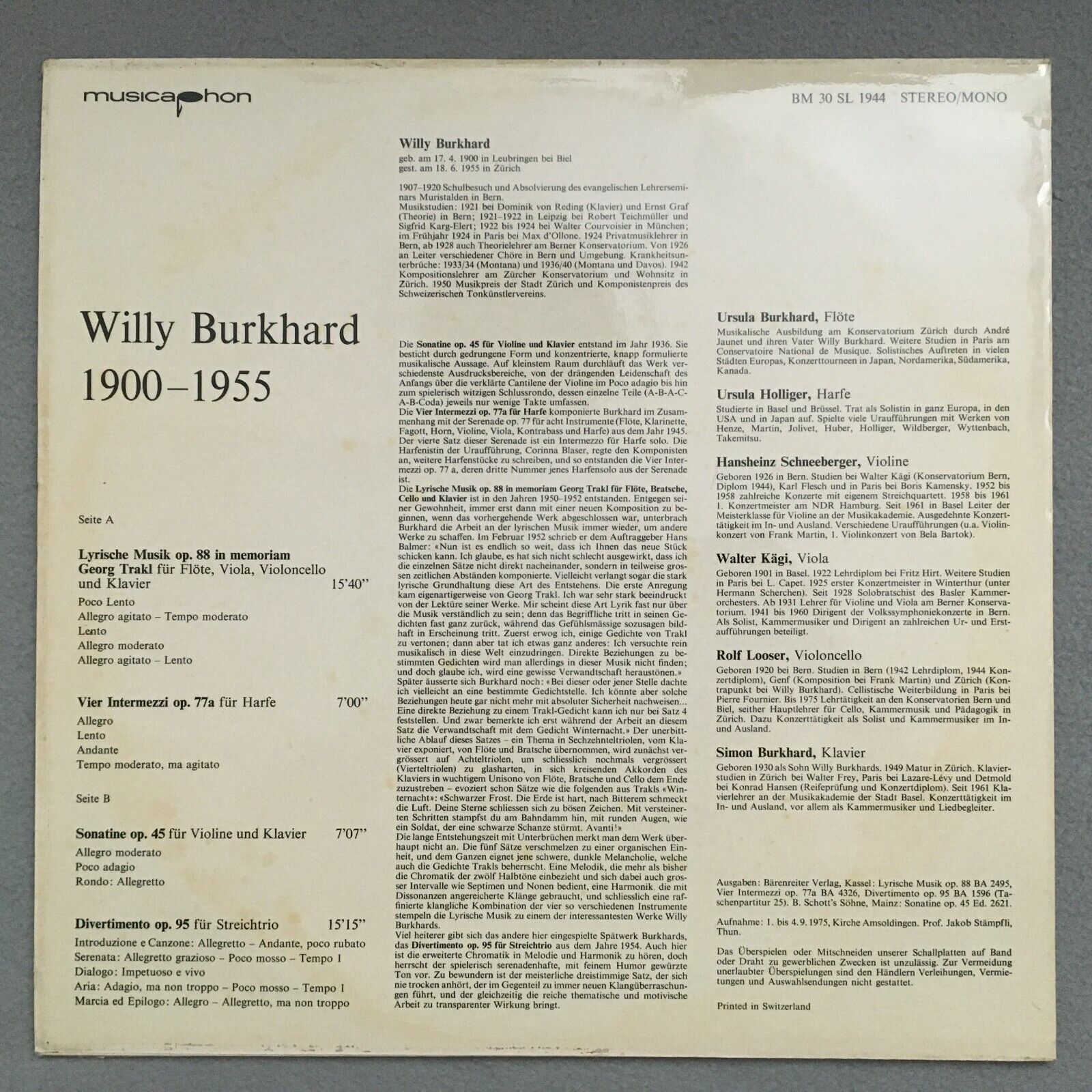 S650 Burkhard Divertimento Kägi Looser Musicaphon BM 30 SL 1944 Stereo
