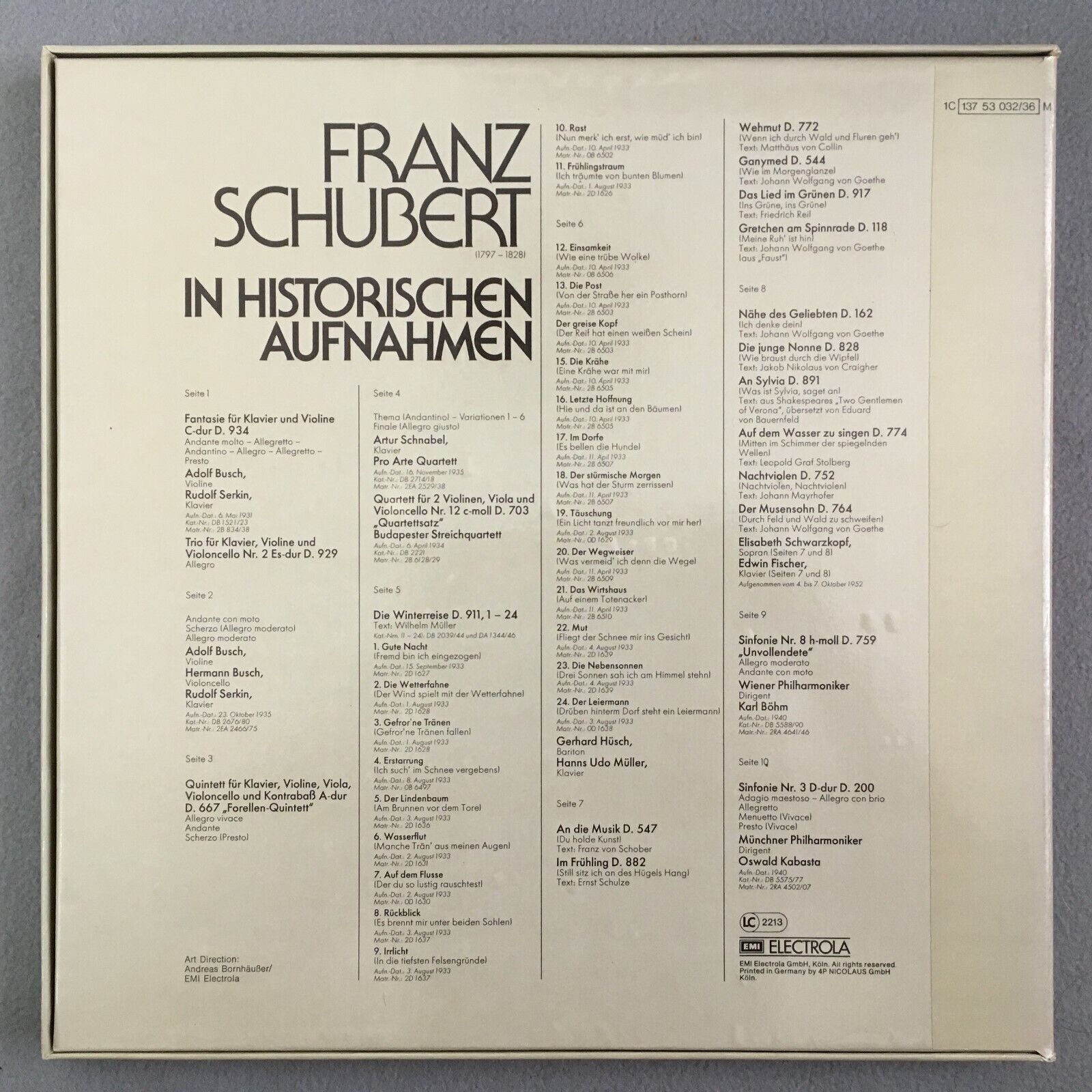 G382 Schubert Bohm Schwarzkopf Schnabel Serkin 5LP EMI 1C 137-53 032/36 M