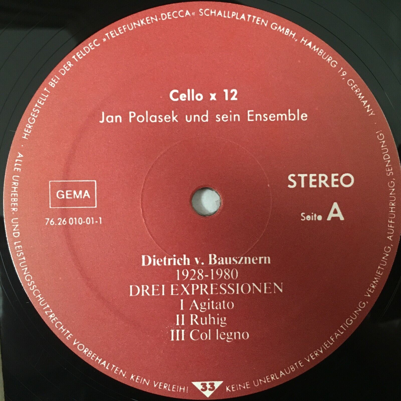 R974 Cello x 12 Bausznern Couperin Polasek & Ensemble Teldec 76.26010 Stereo