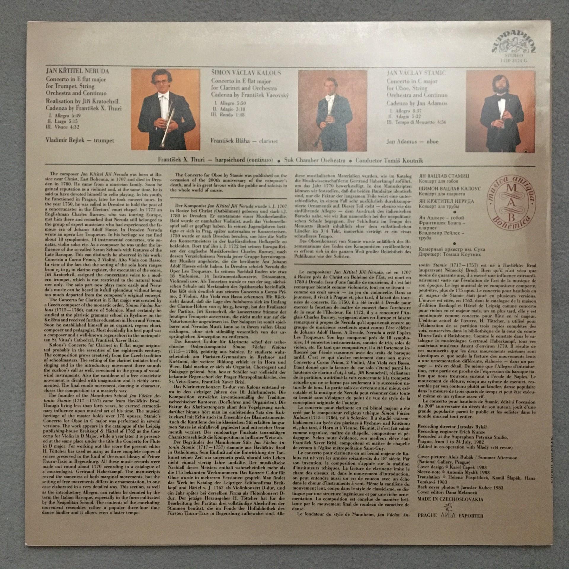 O038 Stamic Kalous Concertos Blaha Adamus Koutnik Supraphon 1110 3174 G Stereo