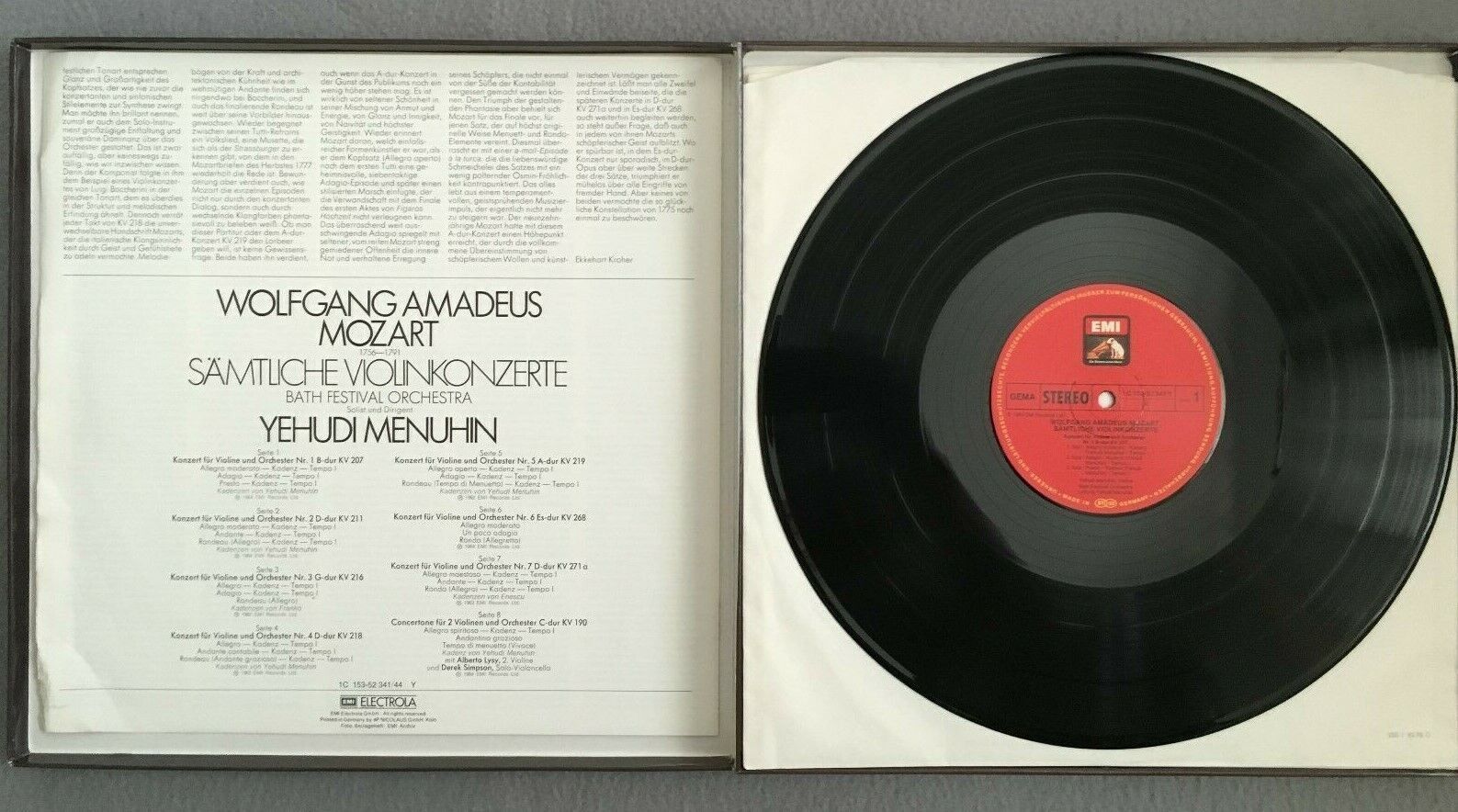 G209 Mozart Complete Violin Concertos Menuhin 4LP EMI 1 C 153-52 341/44 Y Stereo