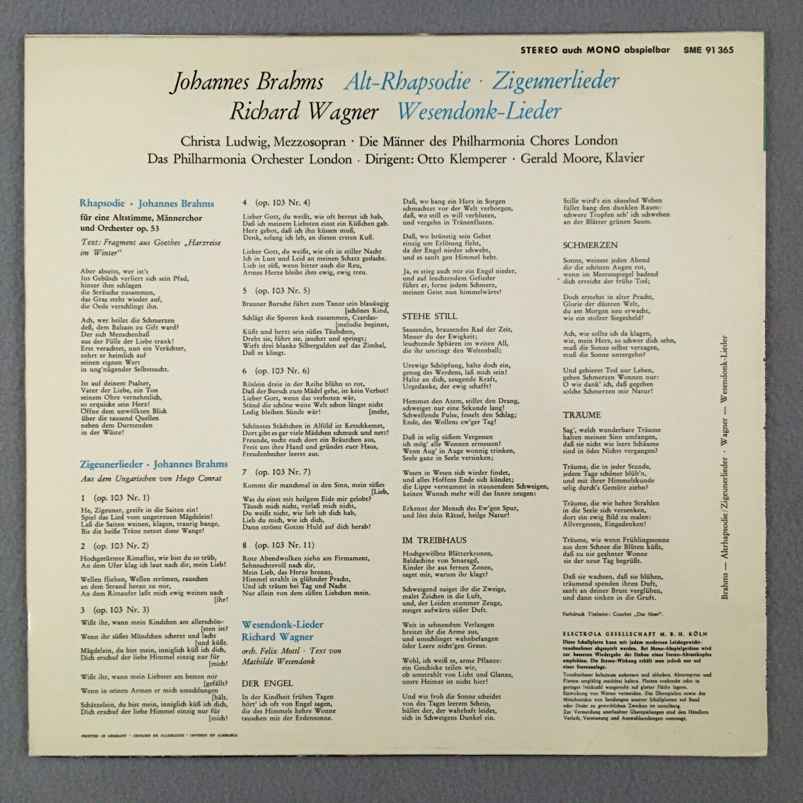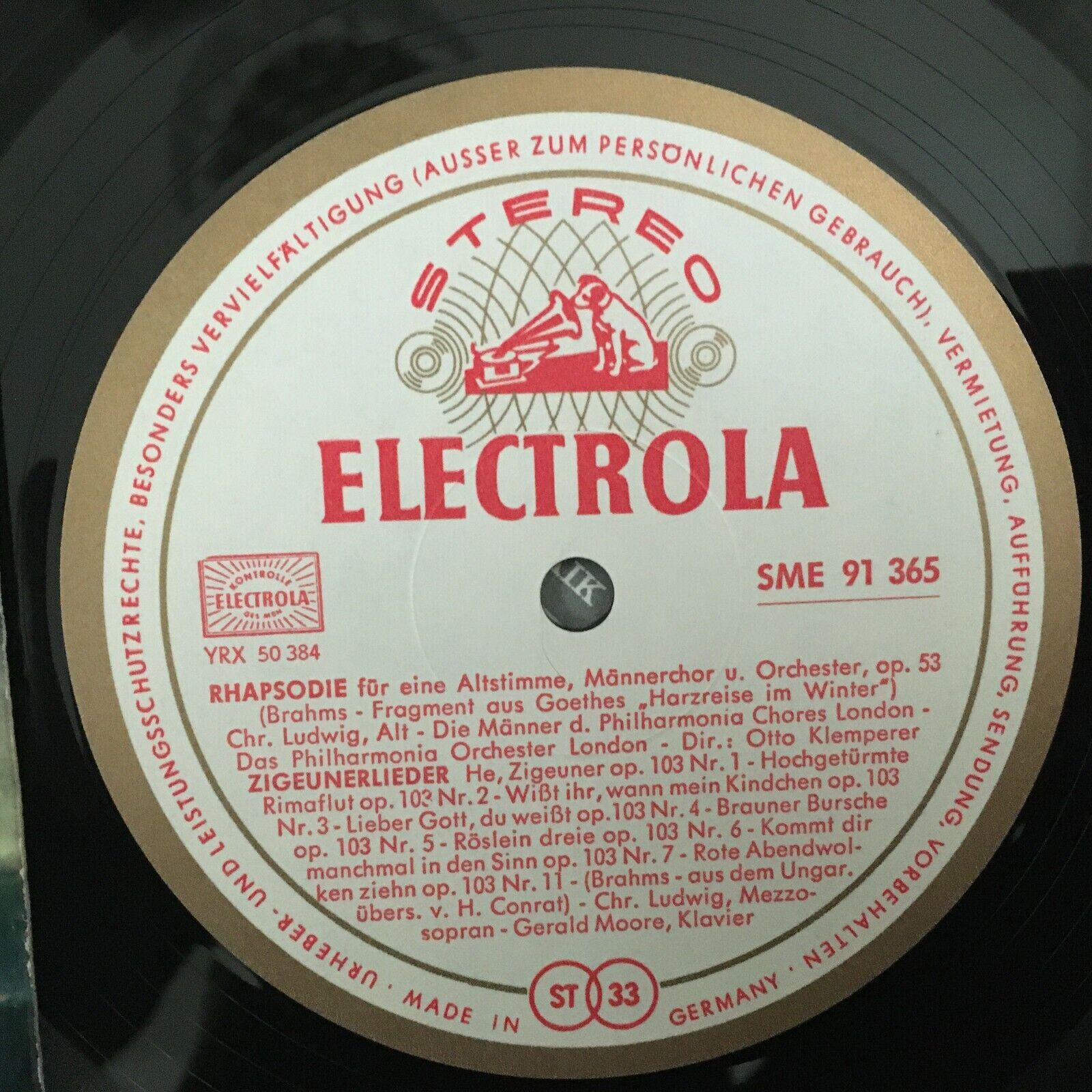 S254 Brahms Rhapsody Songs Ludwig Moore Klemperer EMI w/g SME 91 365 Stereo