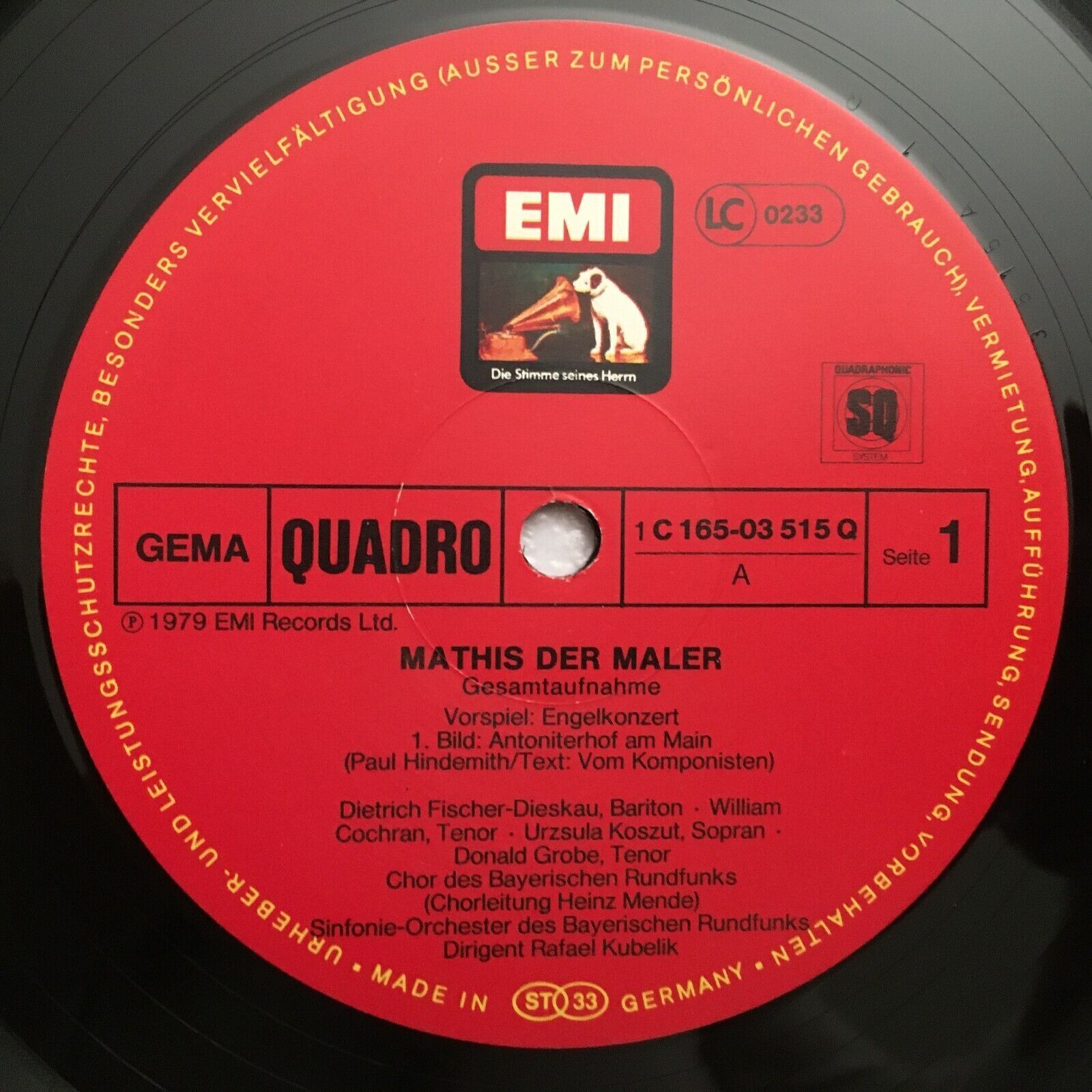C360 Hindemith Mathis der Maler Fischer-Dieskau Kubelik 3LP EMI 1C 165-03 515/17