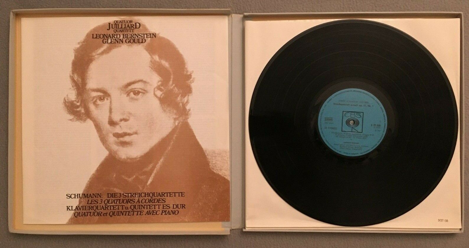 C371 Schumann 3 String Quartets Juilliard Gould Bernstein 3LP CBS S 77 320 Stere
