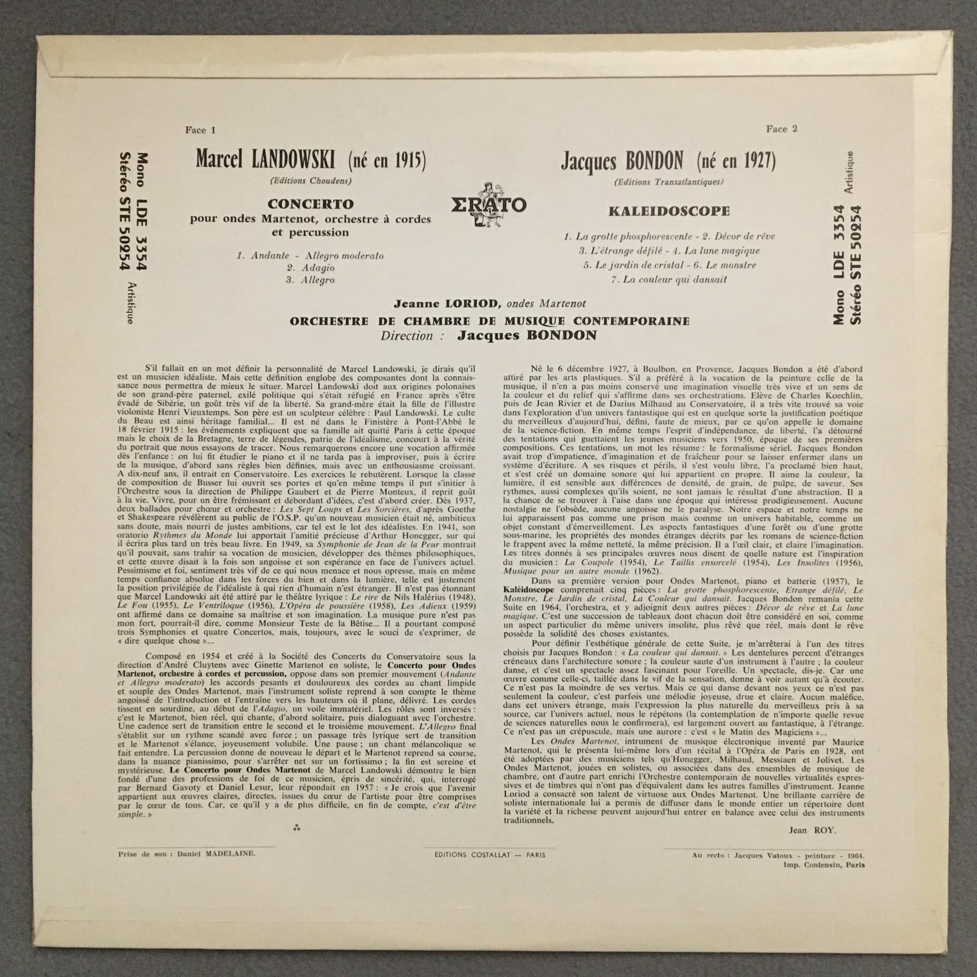 O056 Landowski Concerto Bondon Kaleidoscope Loriod Erato STE 50254 Stereo