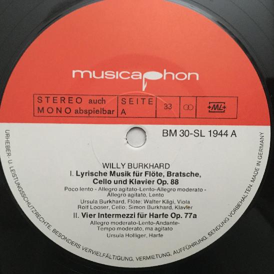O059 Burkhard Lyrical Music Holliger / Harp Kägi Musicaphon BM 30 SL 1944 Stereo