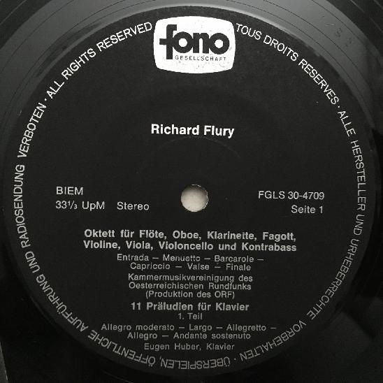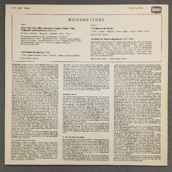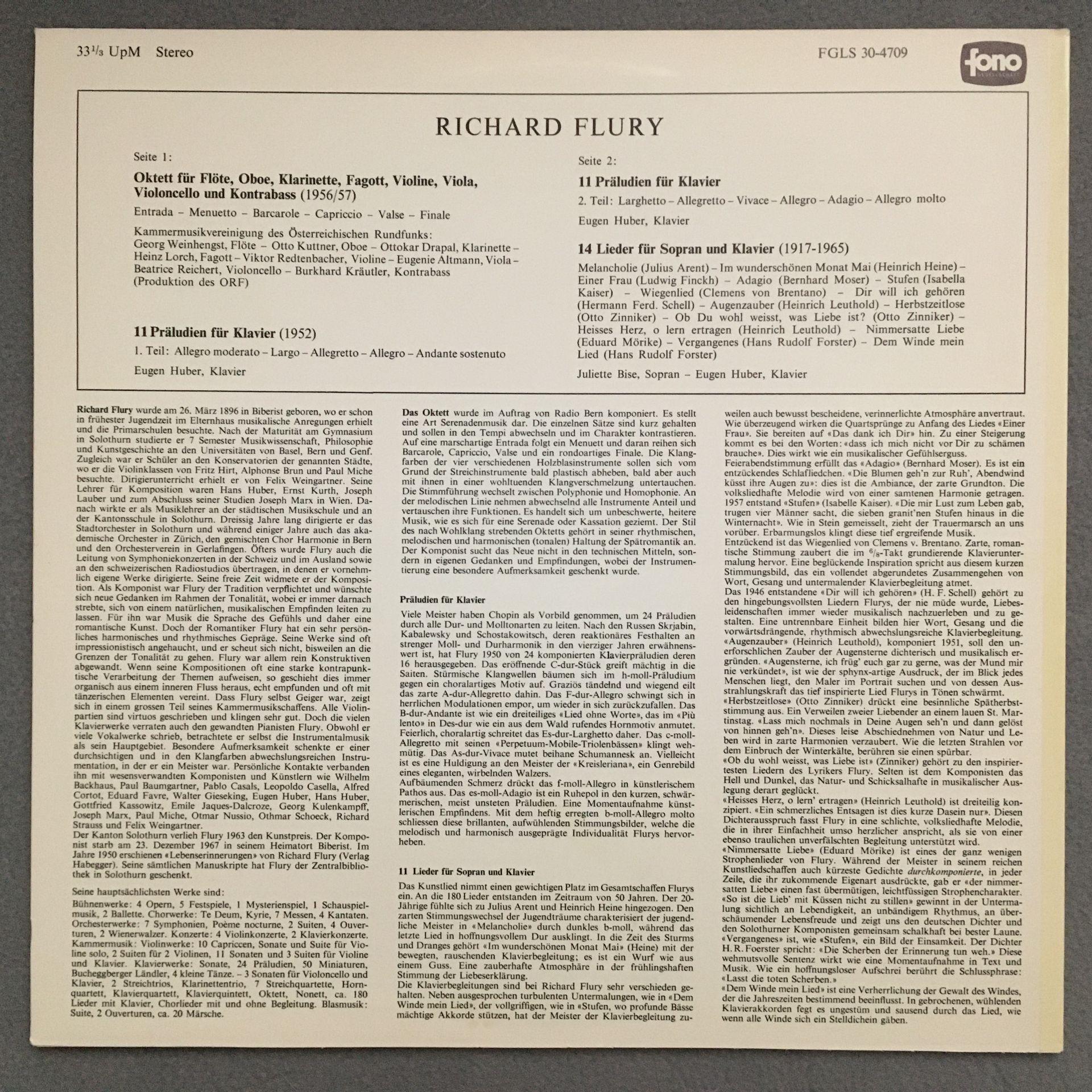 O062 Flury Octet Preludes for Piano Songs Bise Huber FONO FGLS 30-4709 Stereo