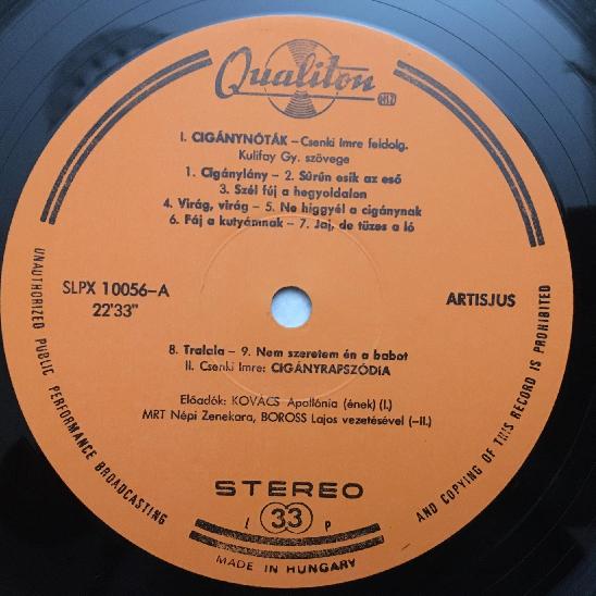 O074 Gipsy Rhapsody by Imre Csenki Qualiton LPX 10058 Stereo