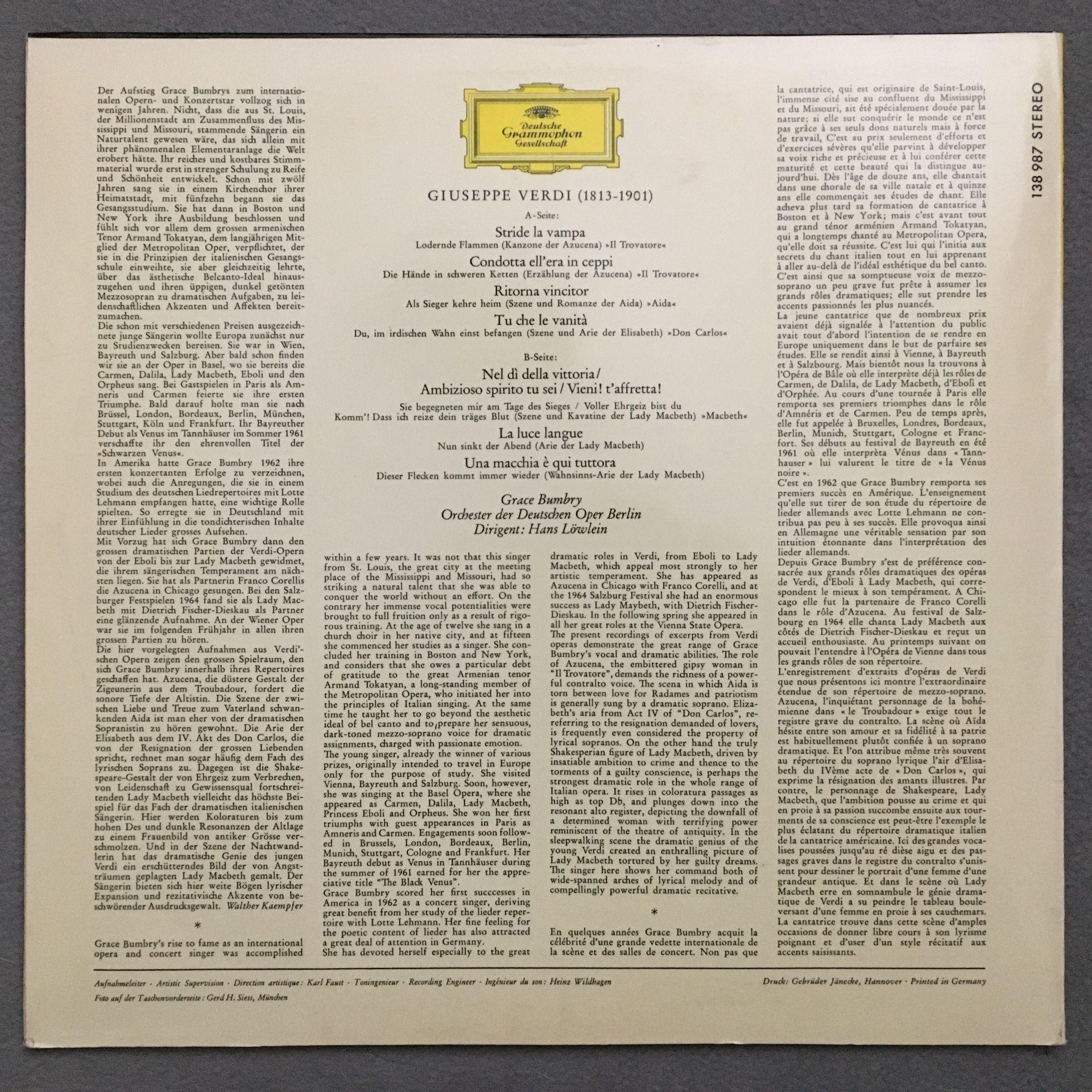 O087 Grace Bumbry Verdi Arias Löwlein DGG 138 987 SLPM Stereo Tulip