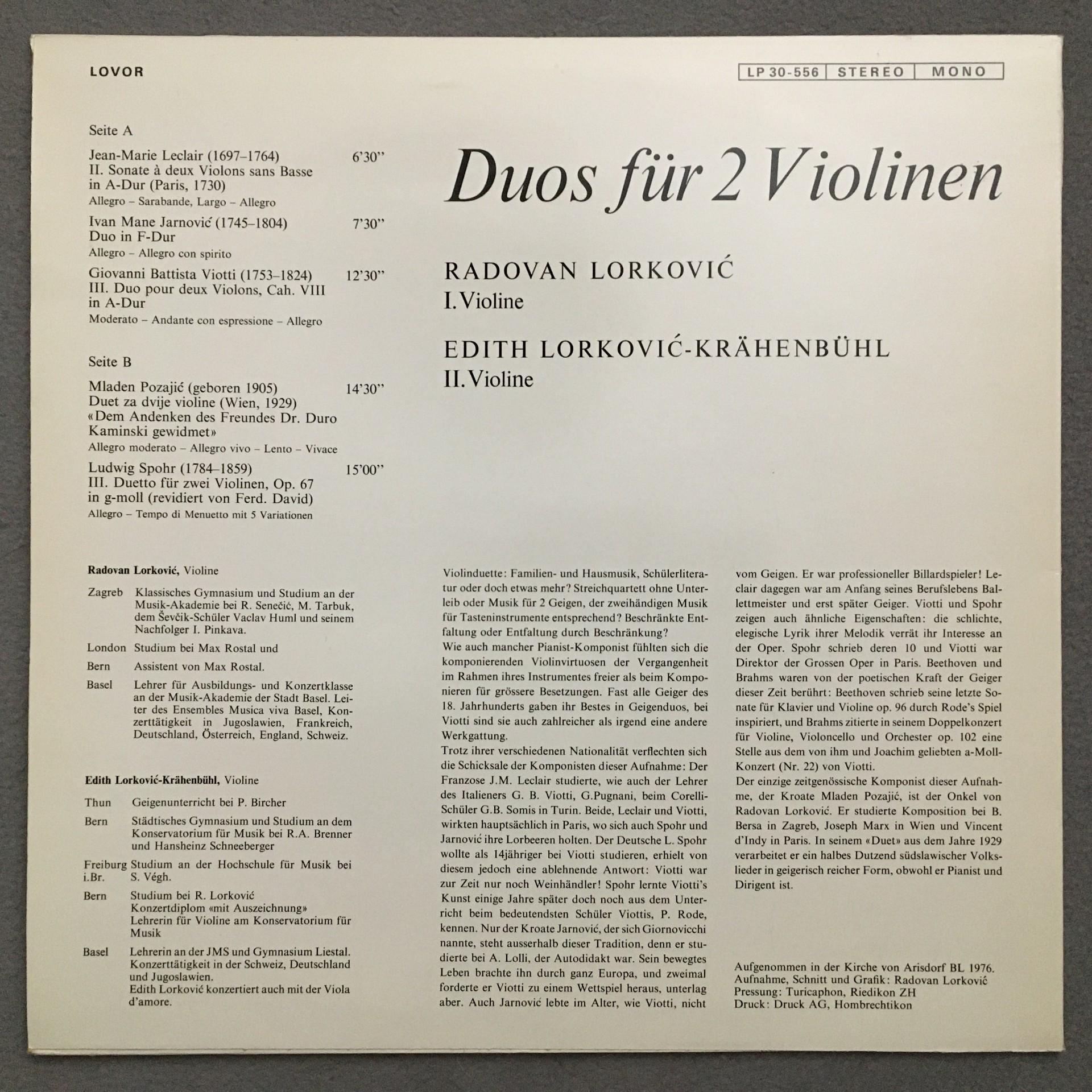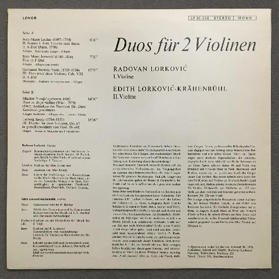 O089 Duos for 2 Violins E. & R. Lokovic Lovor LP 30-556 Stereo