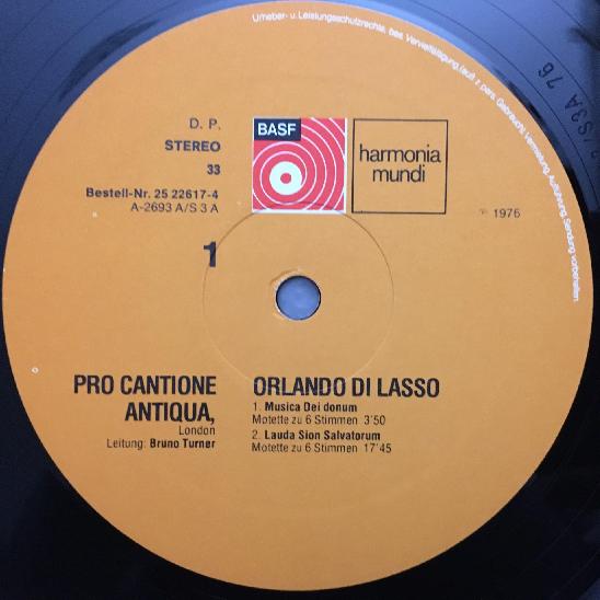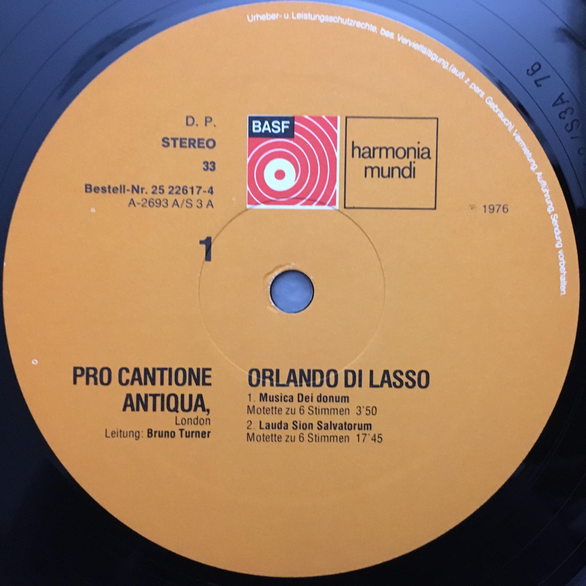 O091 Di Lasso Motets Mass Esswood Turner BASF Harmonia Mundi 25 22617-4 Stereo