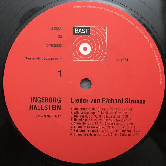 O095 R. Strauss Songs Hallstein Werba Piano BASF 20 21965-8 Stereo