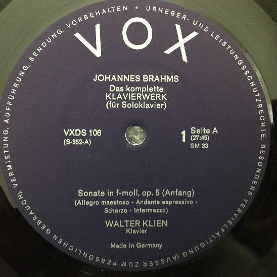D649 Brahms The Complete Piano Work Walter Klien 6LP VOX FSM 106 VXDS Stereo