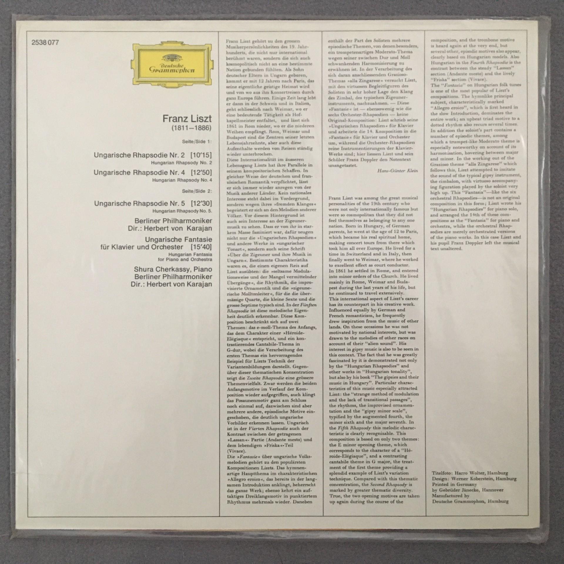 A081 Liszt Hungarian Rhapsodie Cherkassy Karajan DGG 2538 077 Stereo SEALED