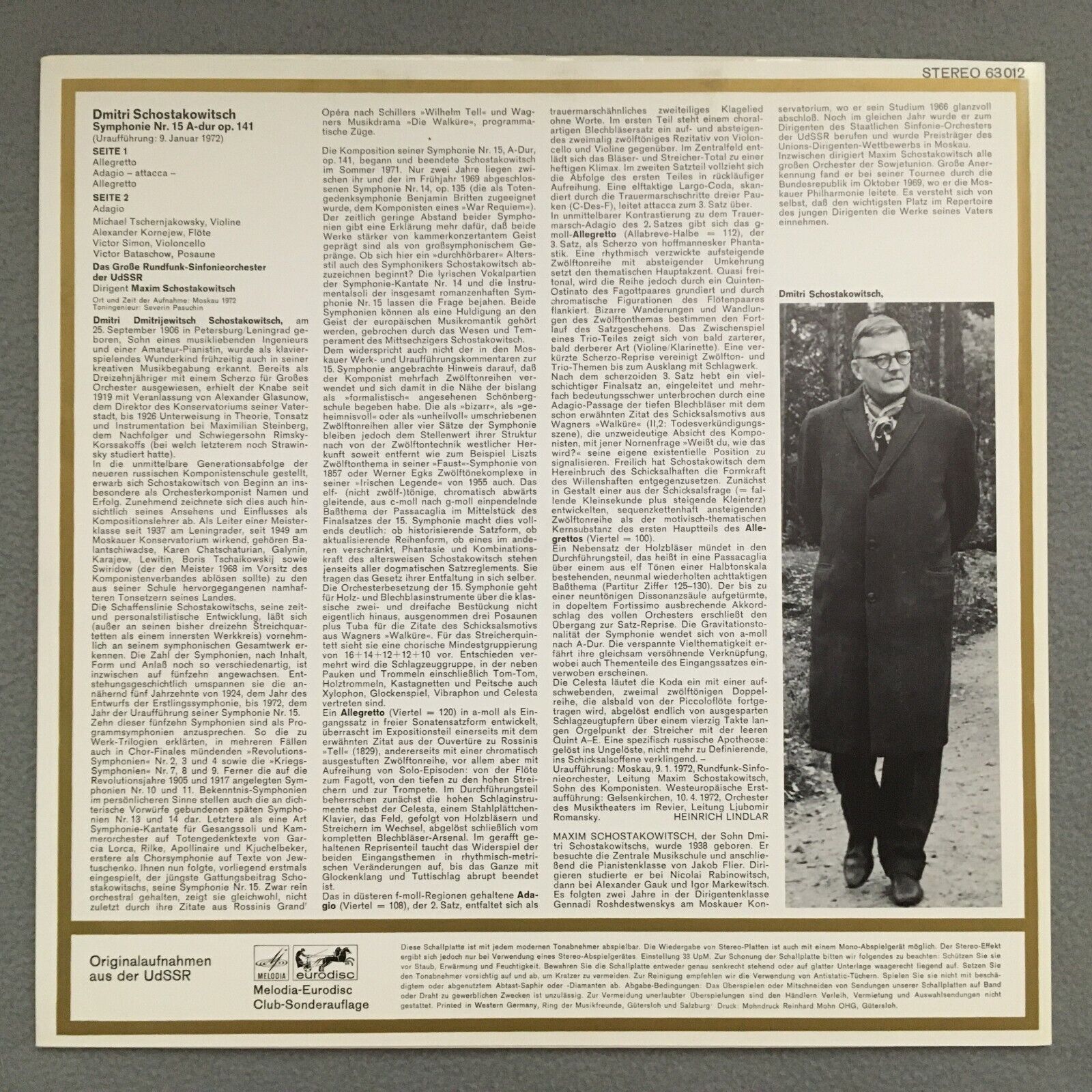 S496 Shostakovich Symphony No.15 M. Shostakovich Eurodisc 63 012 Stereo