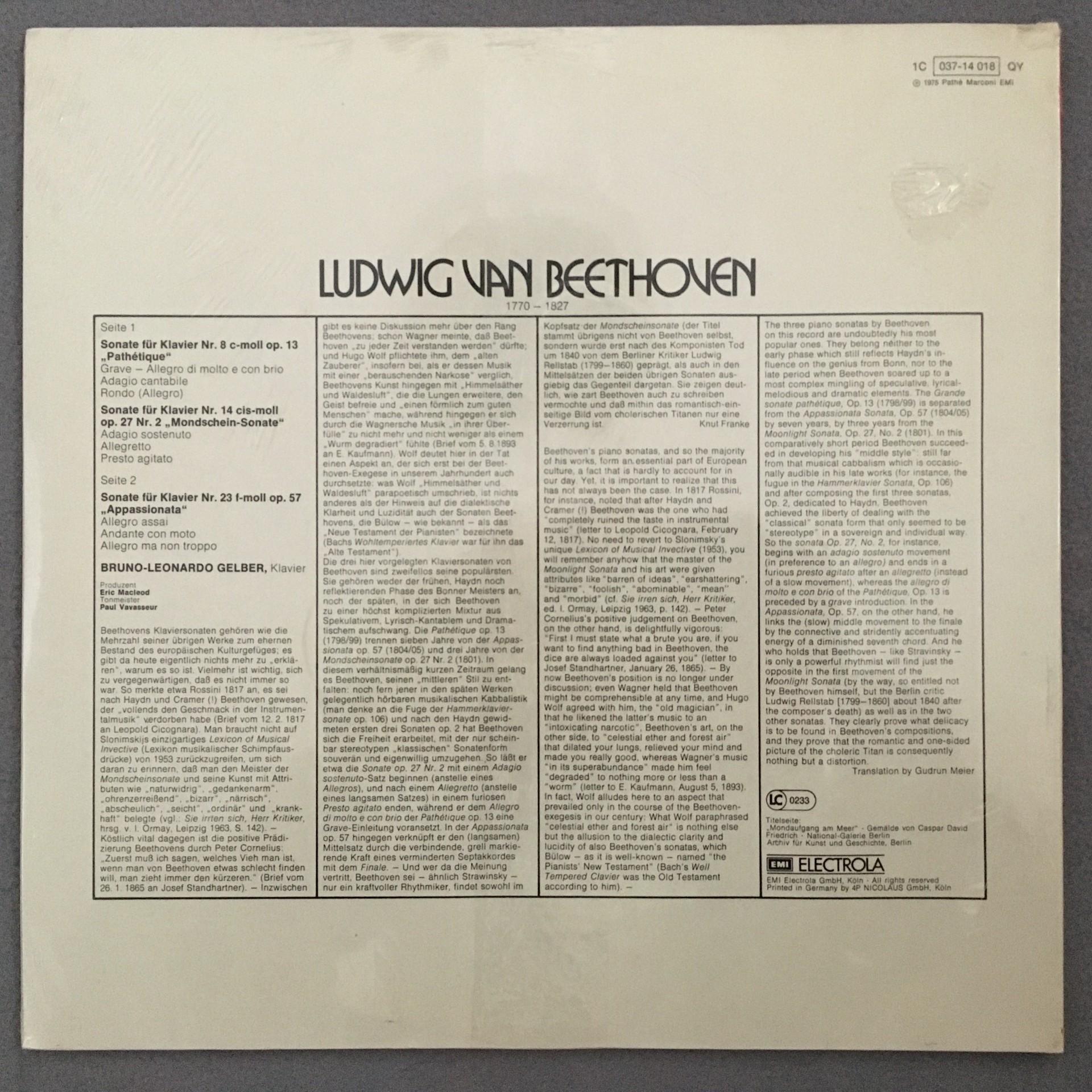 A098 Beethoven Piano Sonatas Gelber EMI 1C 037-14 018 QY Quadro SEALED