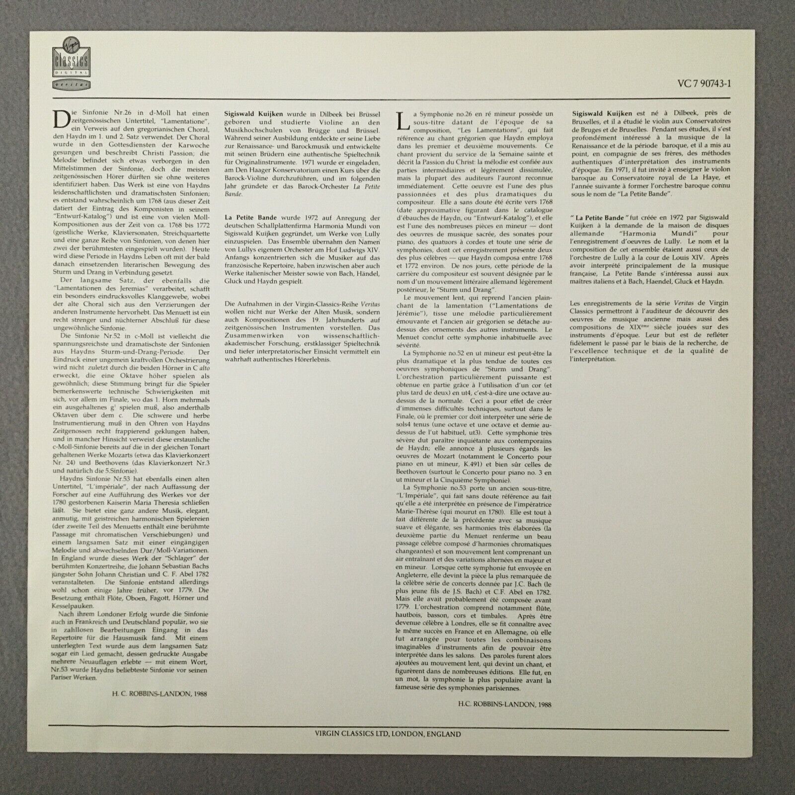 S523 Haydn Symphonies Kuijken Virgin VC 7 90743-1 Digital Stereo