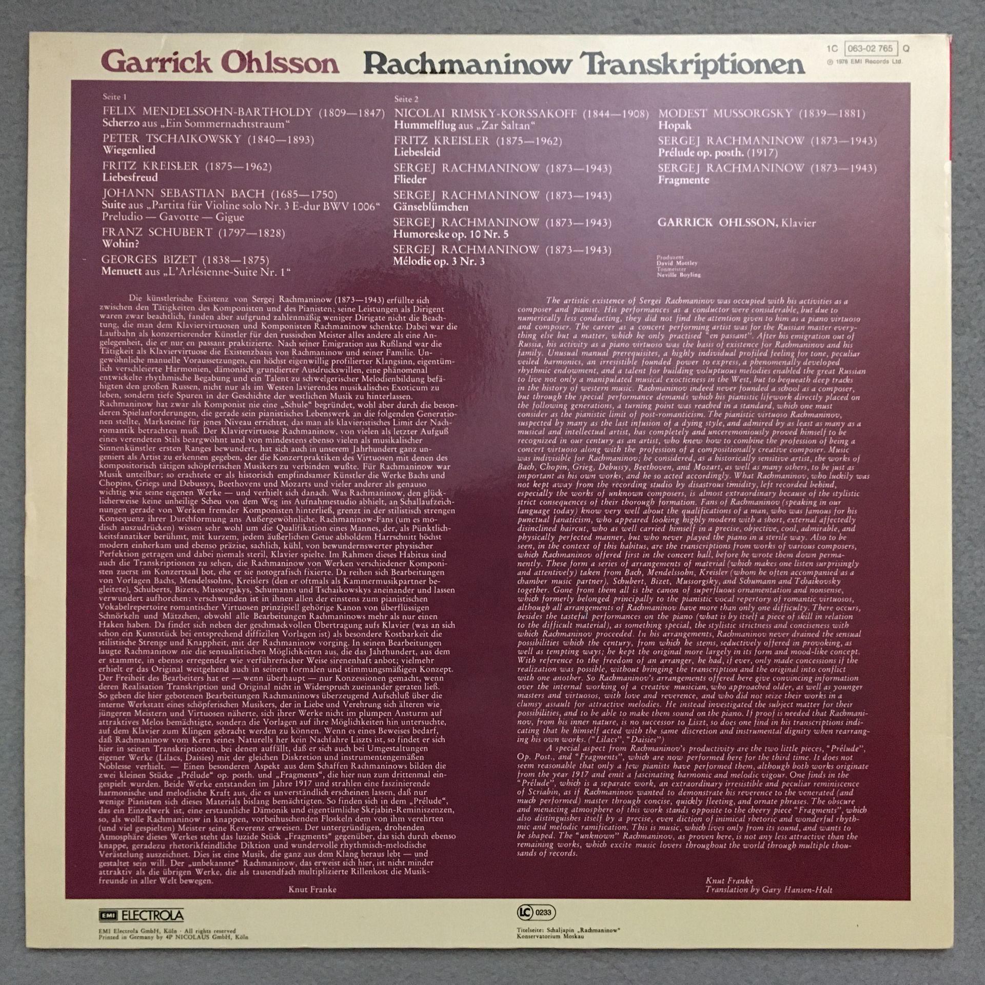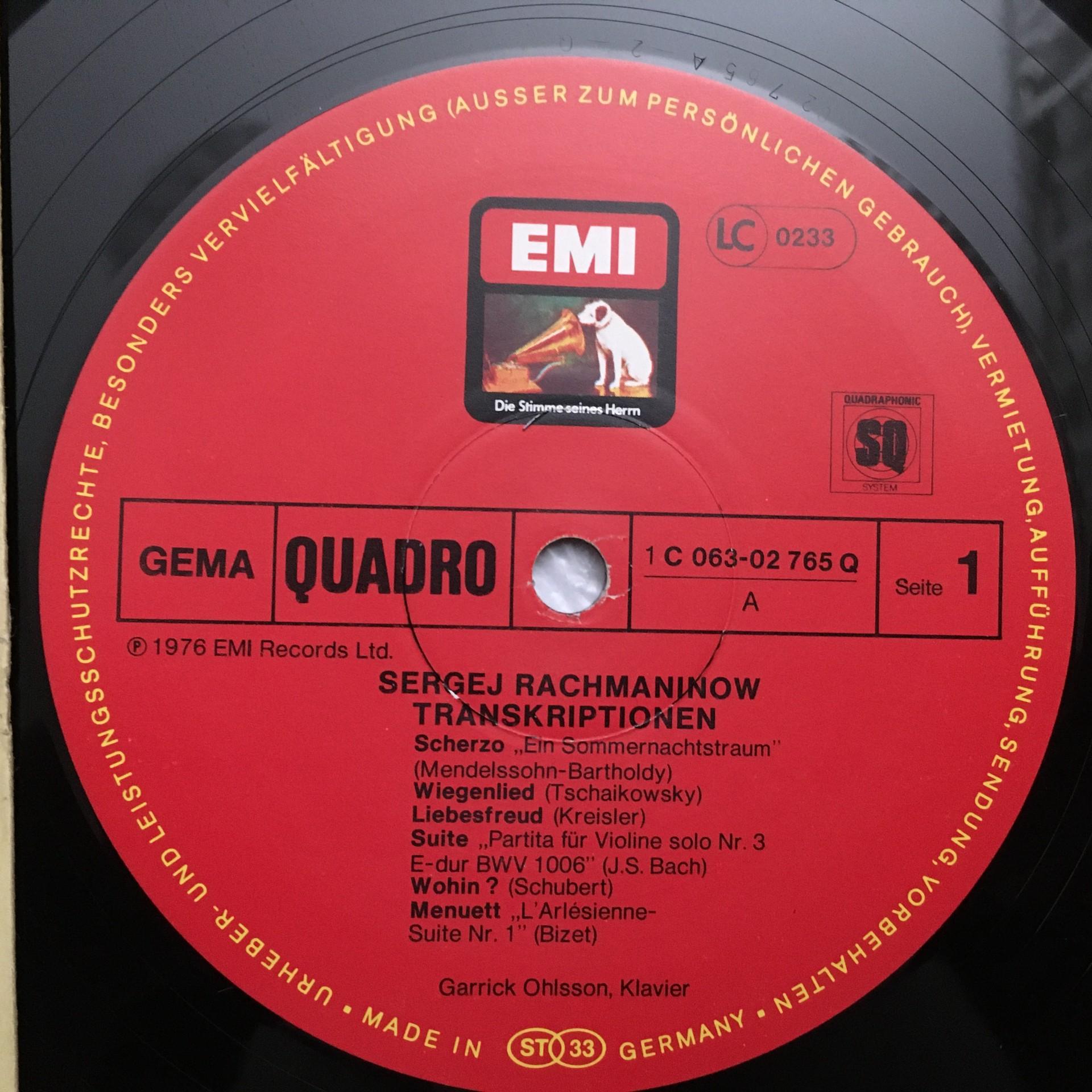 O111 Rachmaninov Transkriptions Ohlsson Piano EMI 1C 063-02 765 Q Quadro