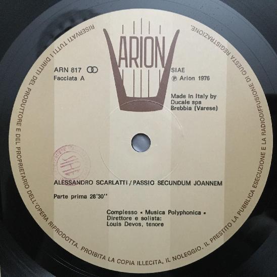 O133 Scarlatti St. John Passion Devos Arion ARN 817 Stereo