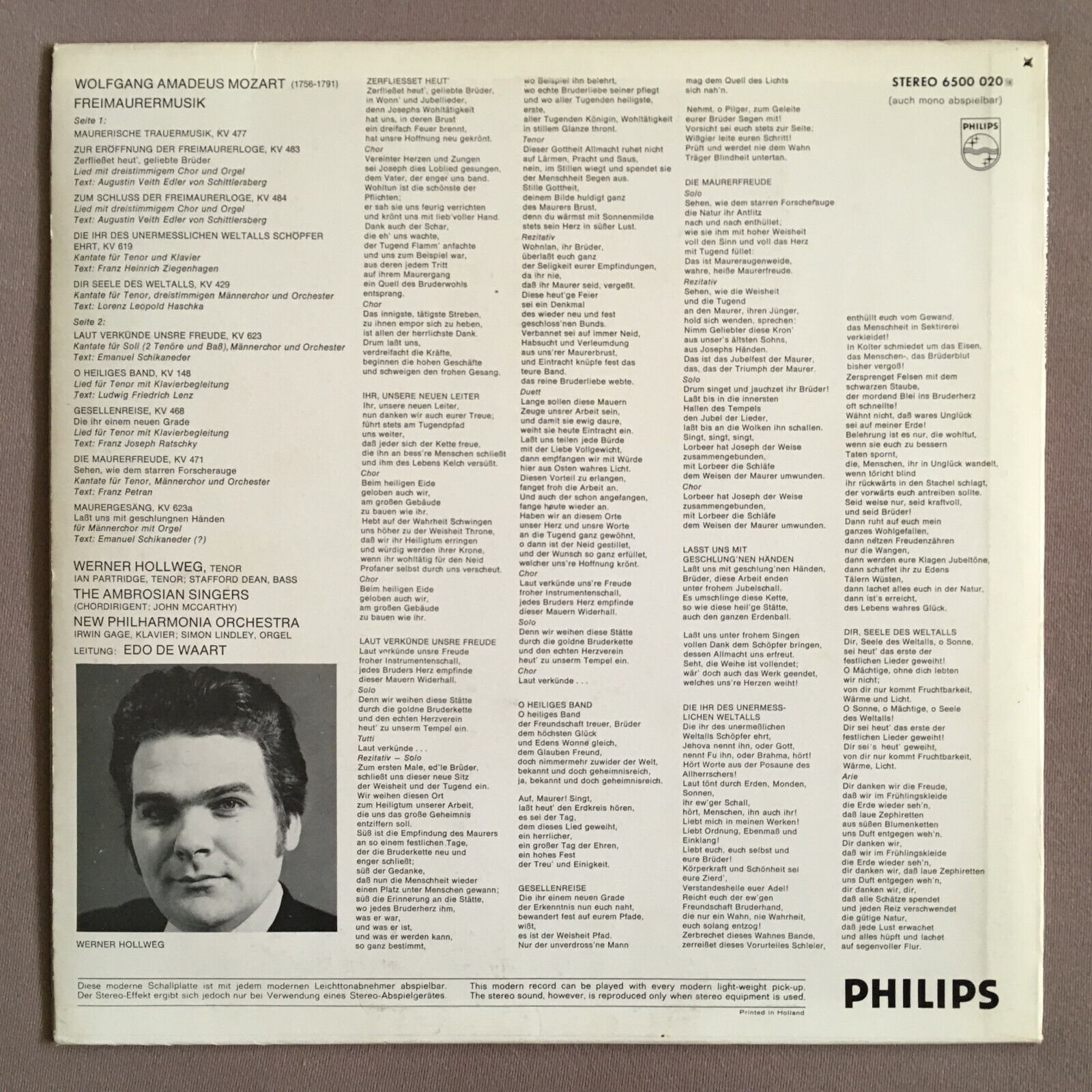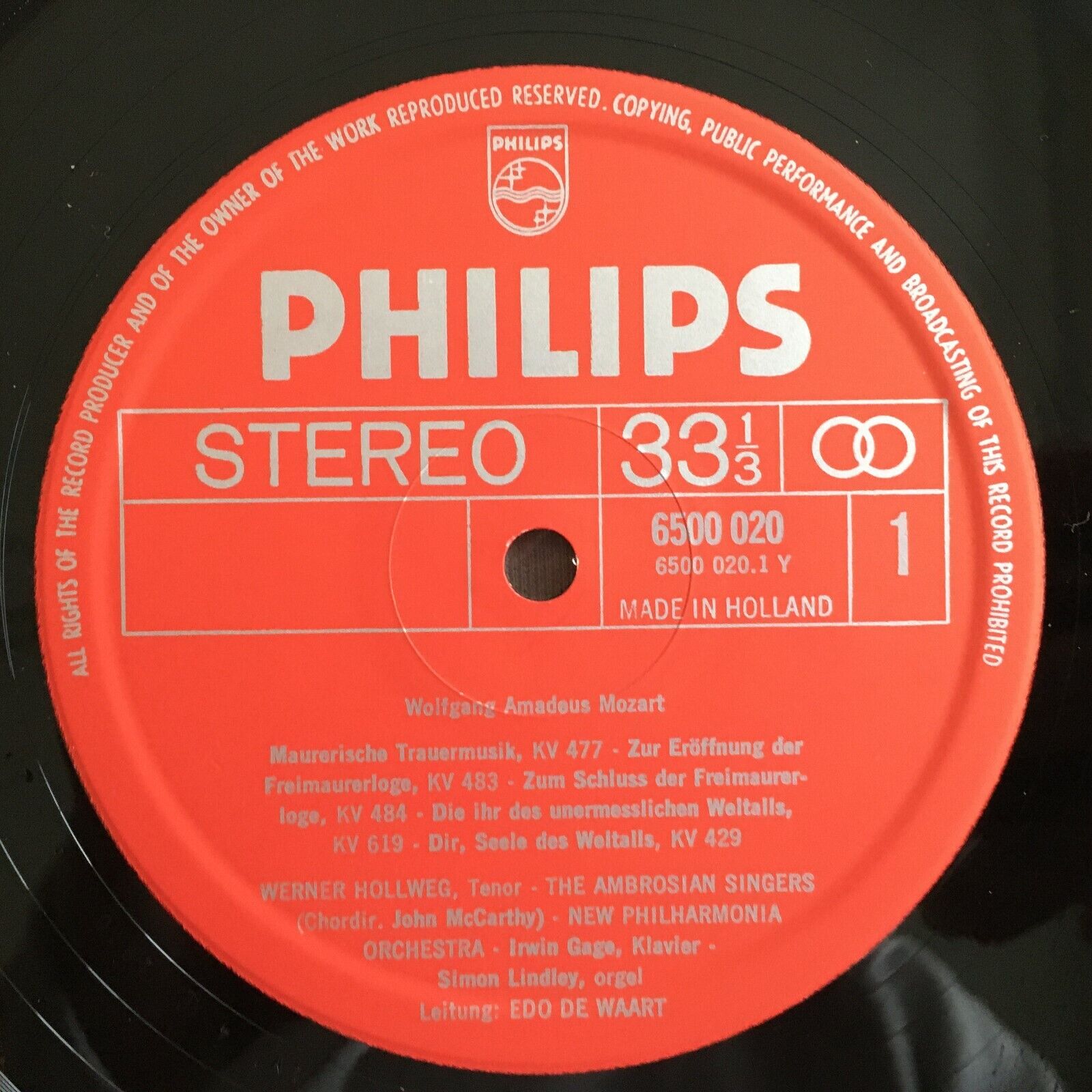 X787 Mozart Freimaurermusik Masonic Music De Waart Philips 6500 020 Stereo