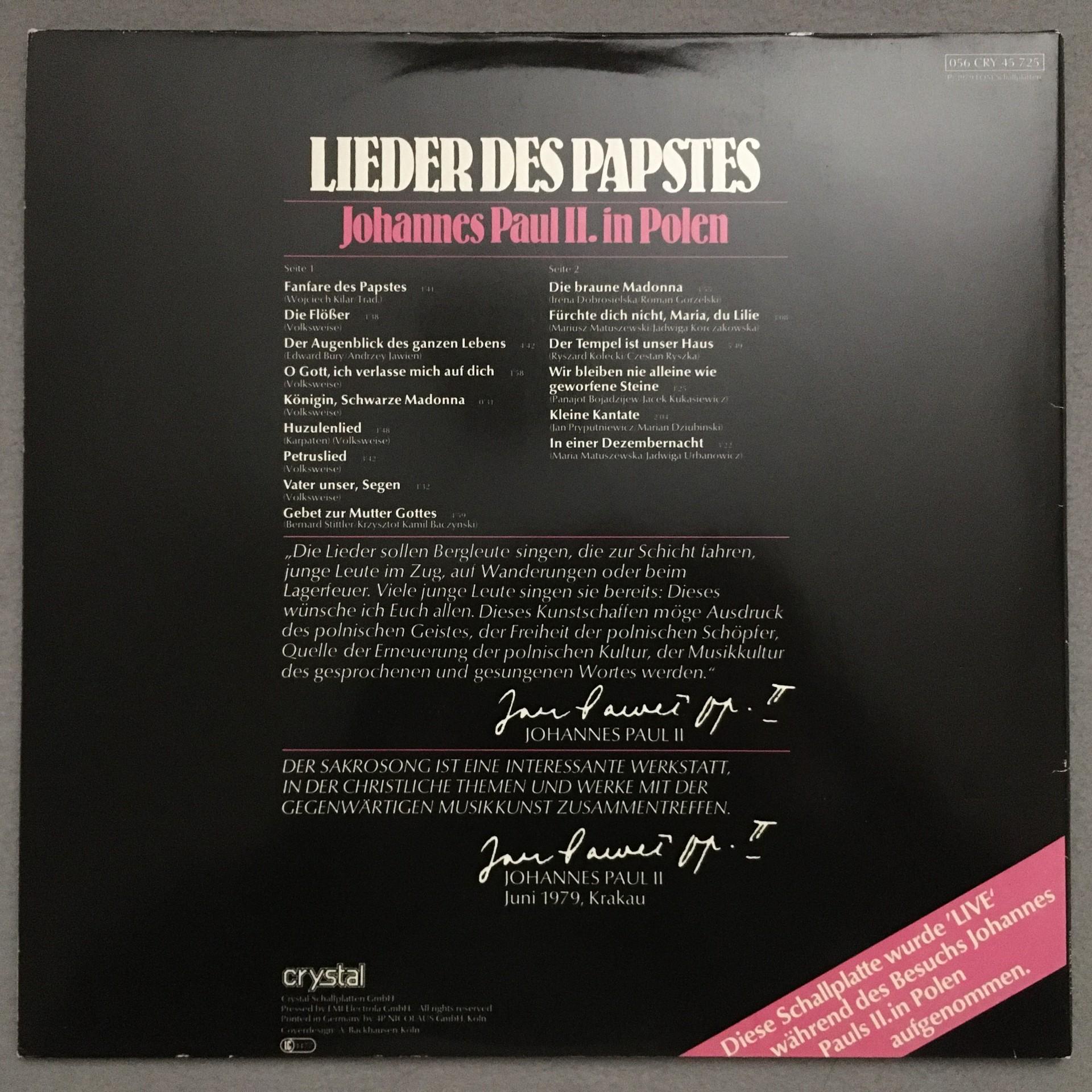 O152 Songs of the Pope in Poland Live Johannes Paul II Crystal 056 CRY 45 725 St