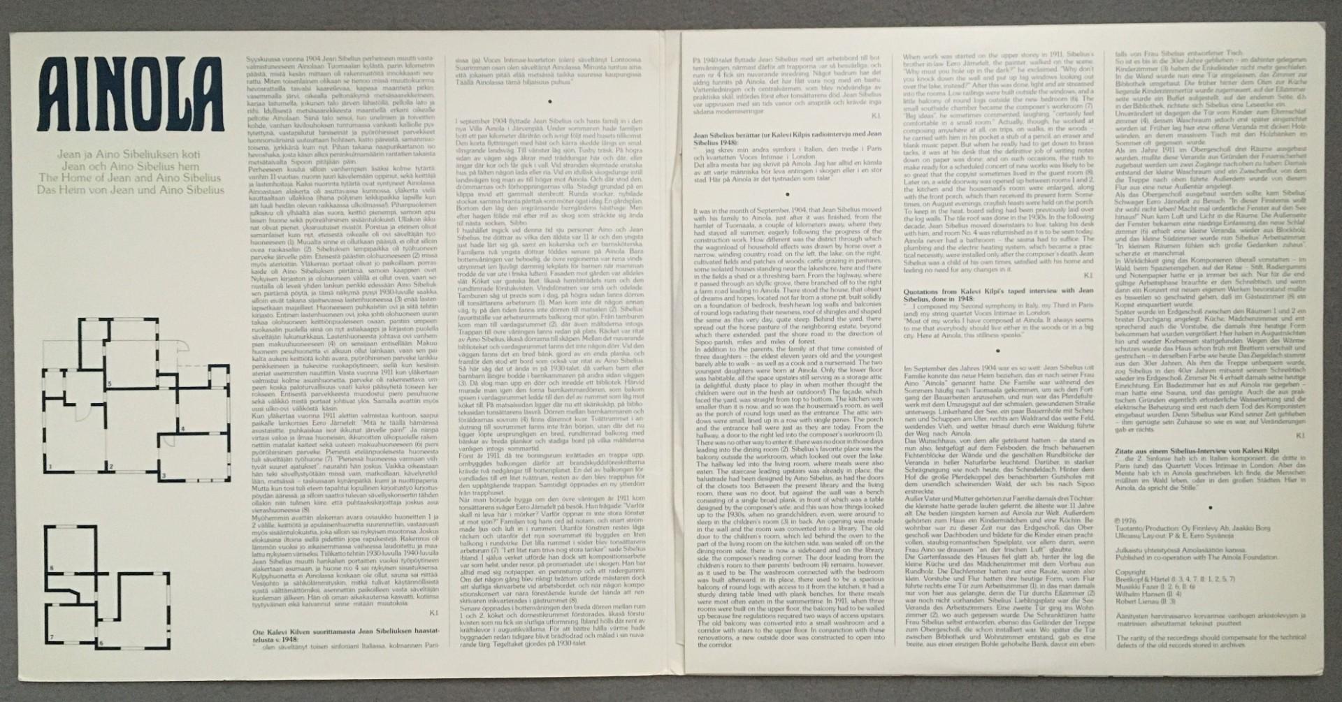 O158 Ainola The Home of J. & A. Sibelius Finnlevy SFLP 8568 Stereo
