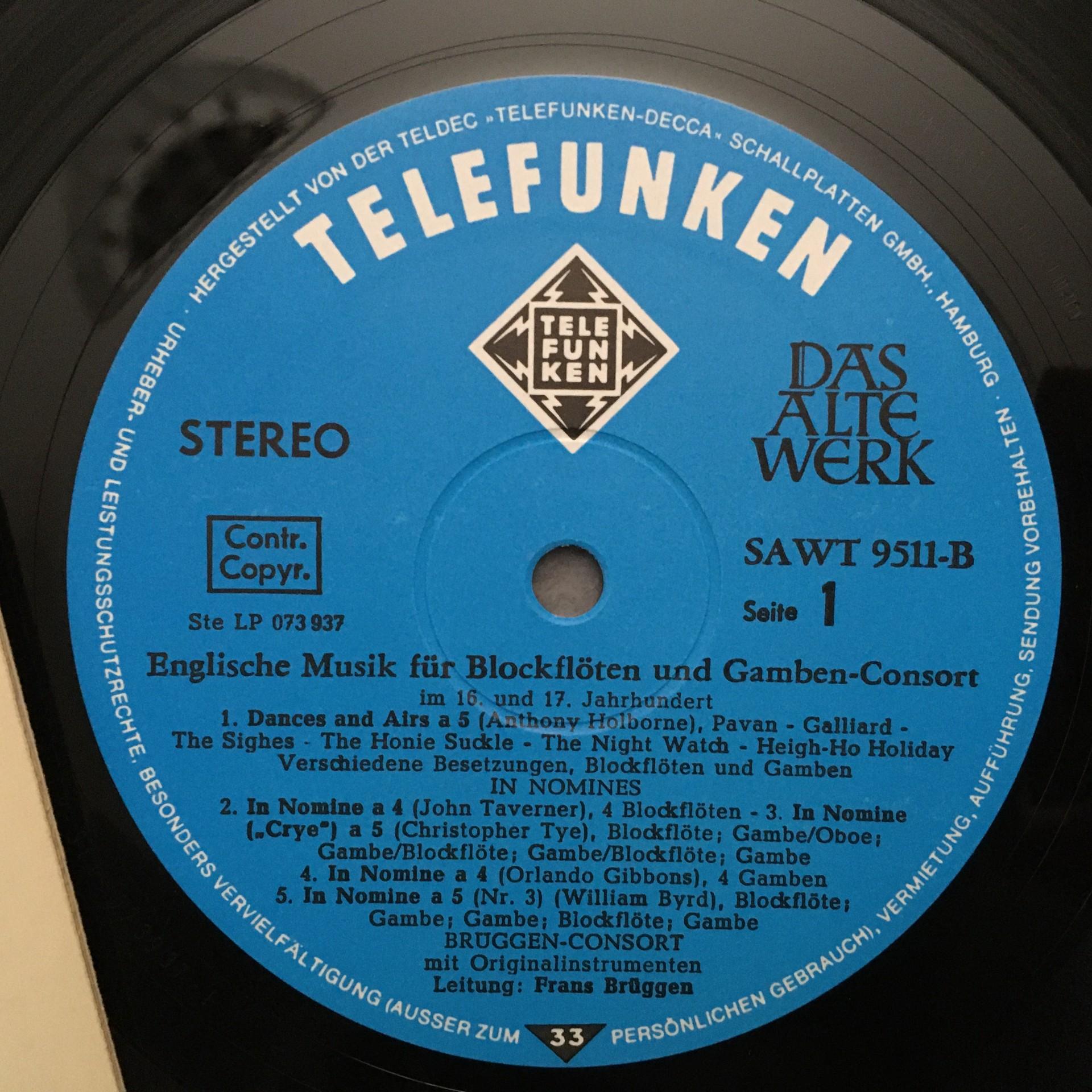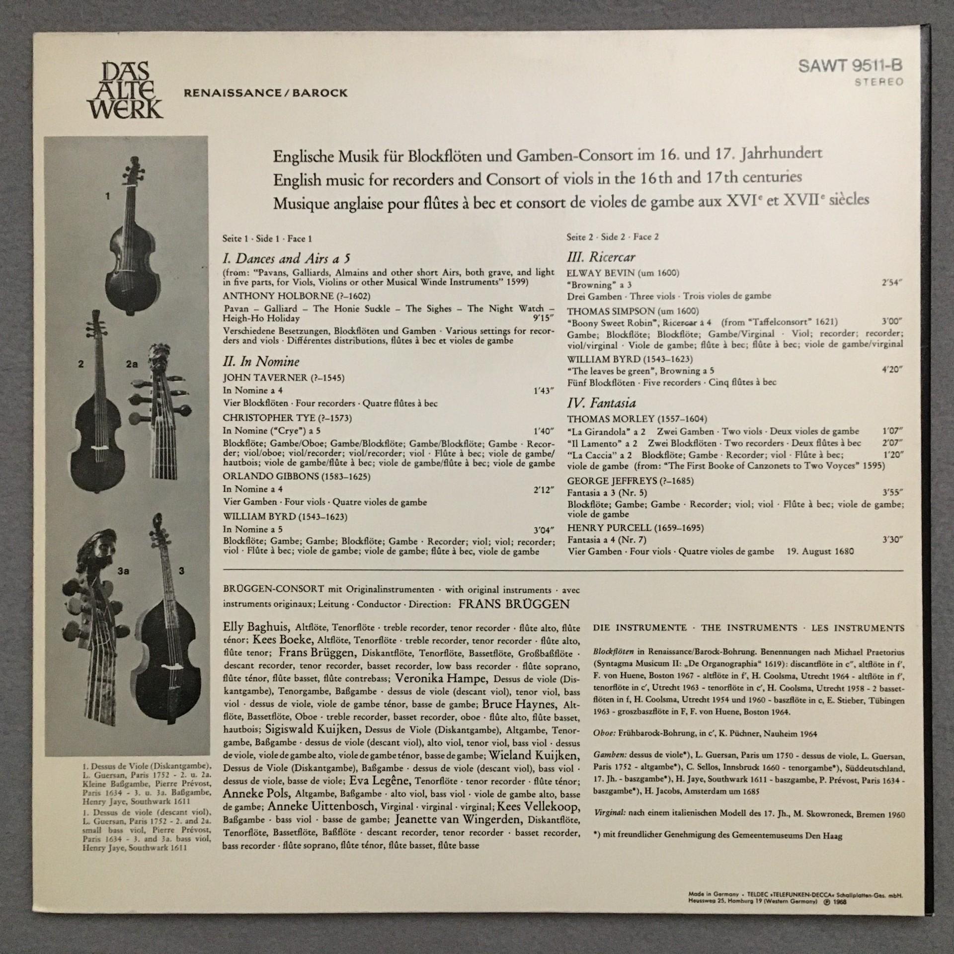 O159 English Music for Recorder Works Brüggen Telefunken SAWT 9511-B Stereo