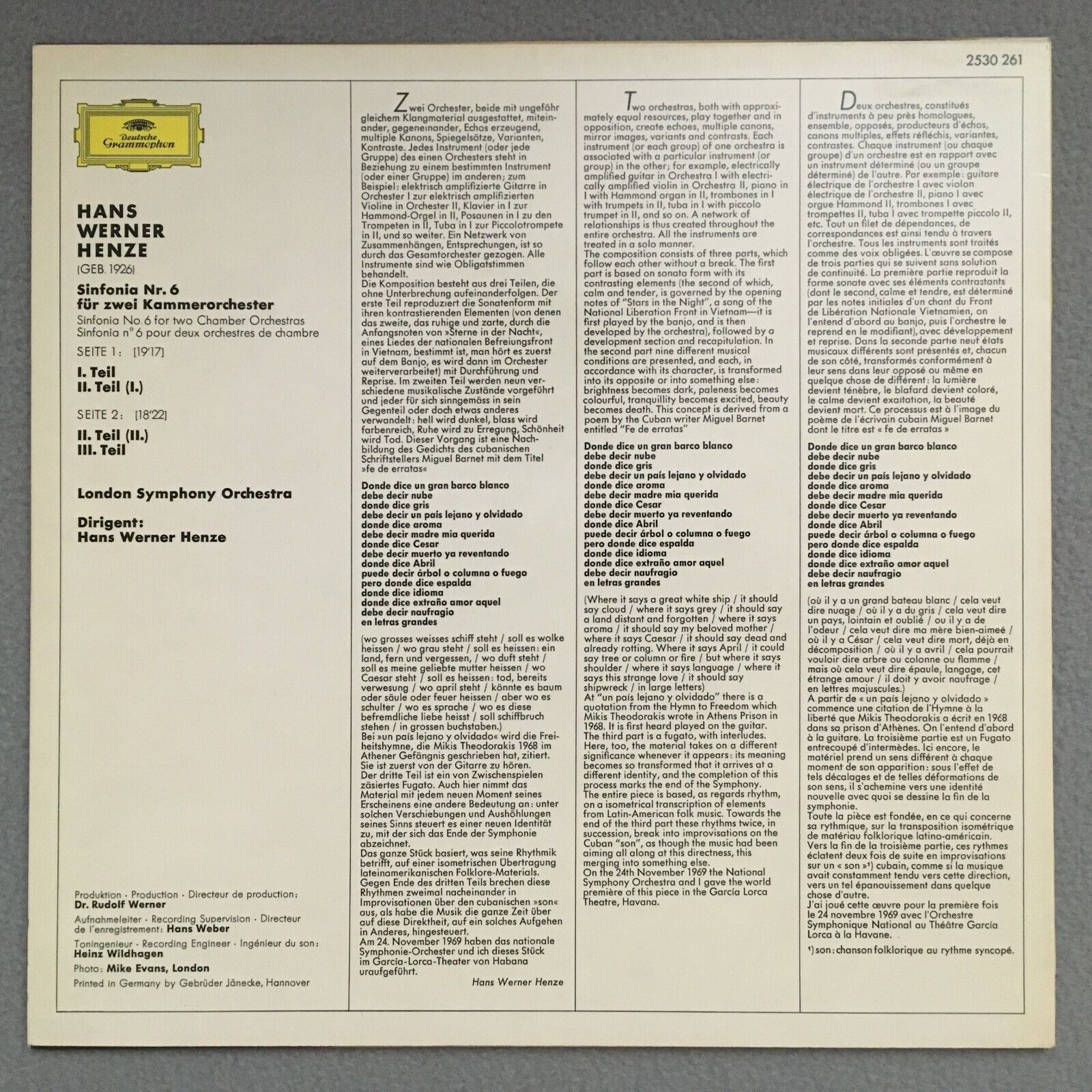 S830 Henze Sinfonia No.6 for 2 Chamber Orchestras Henze DGG 2530 261 Stereo