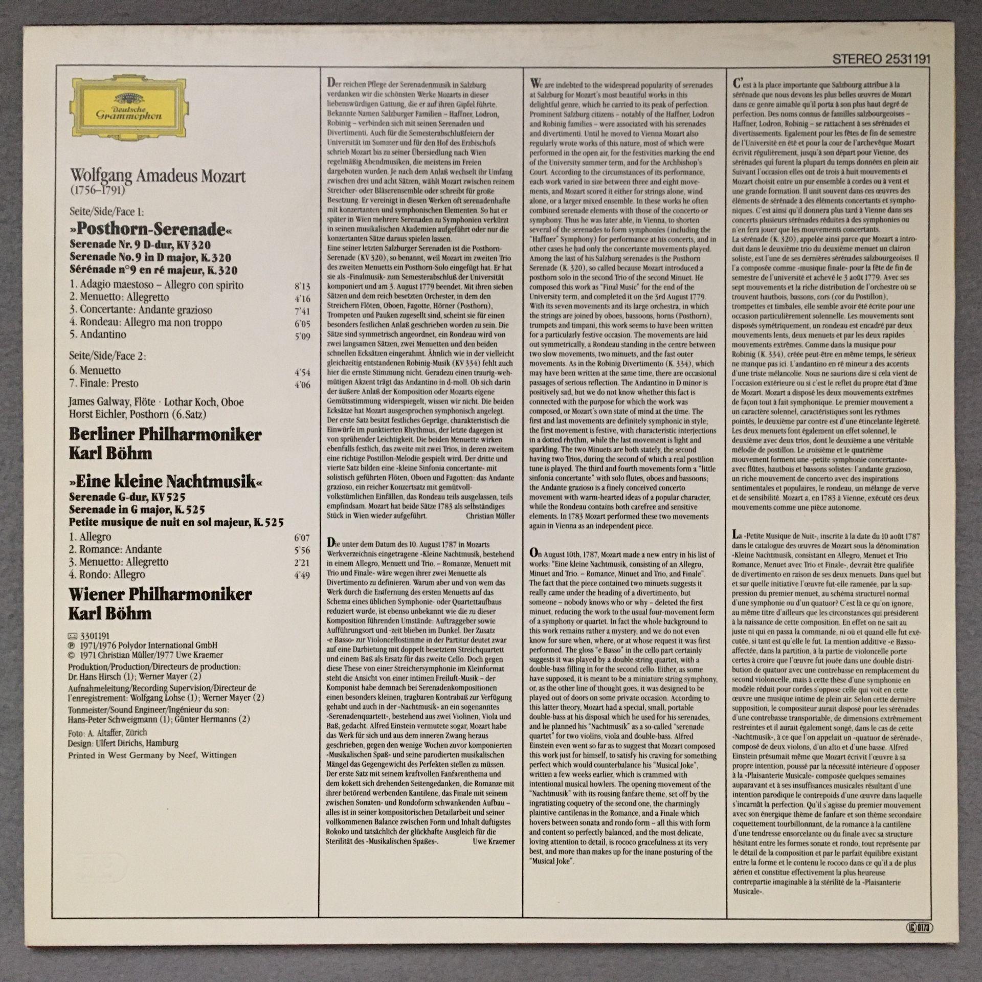 O206 Mozart Serenades Galway Koch Bohm VPO DGG 2531 191 Stereo