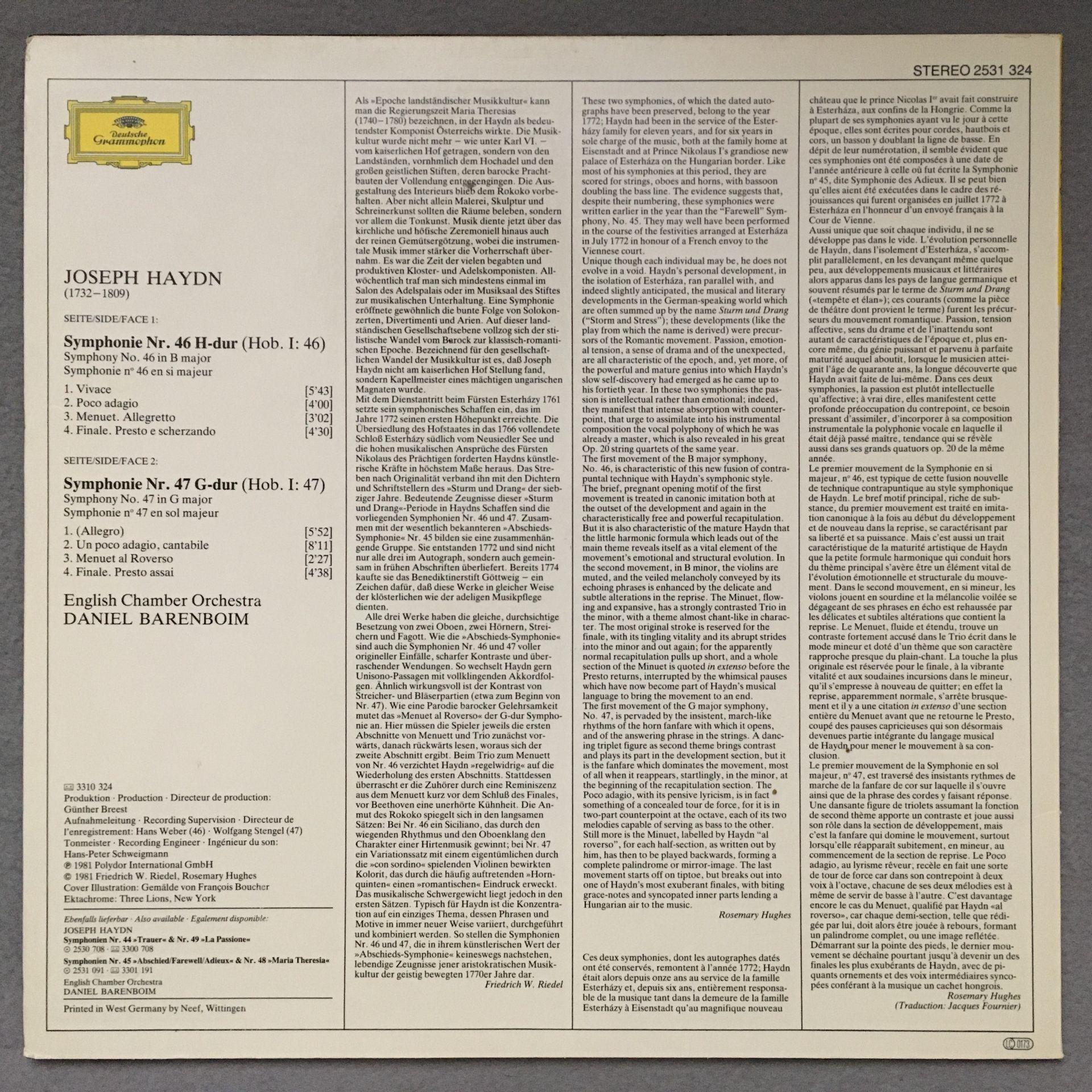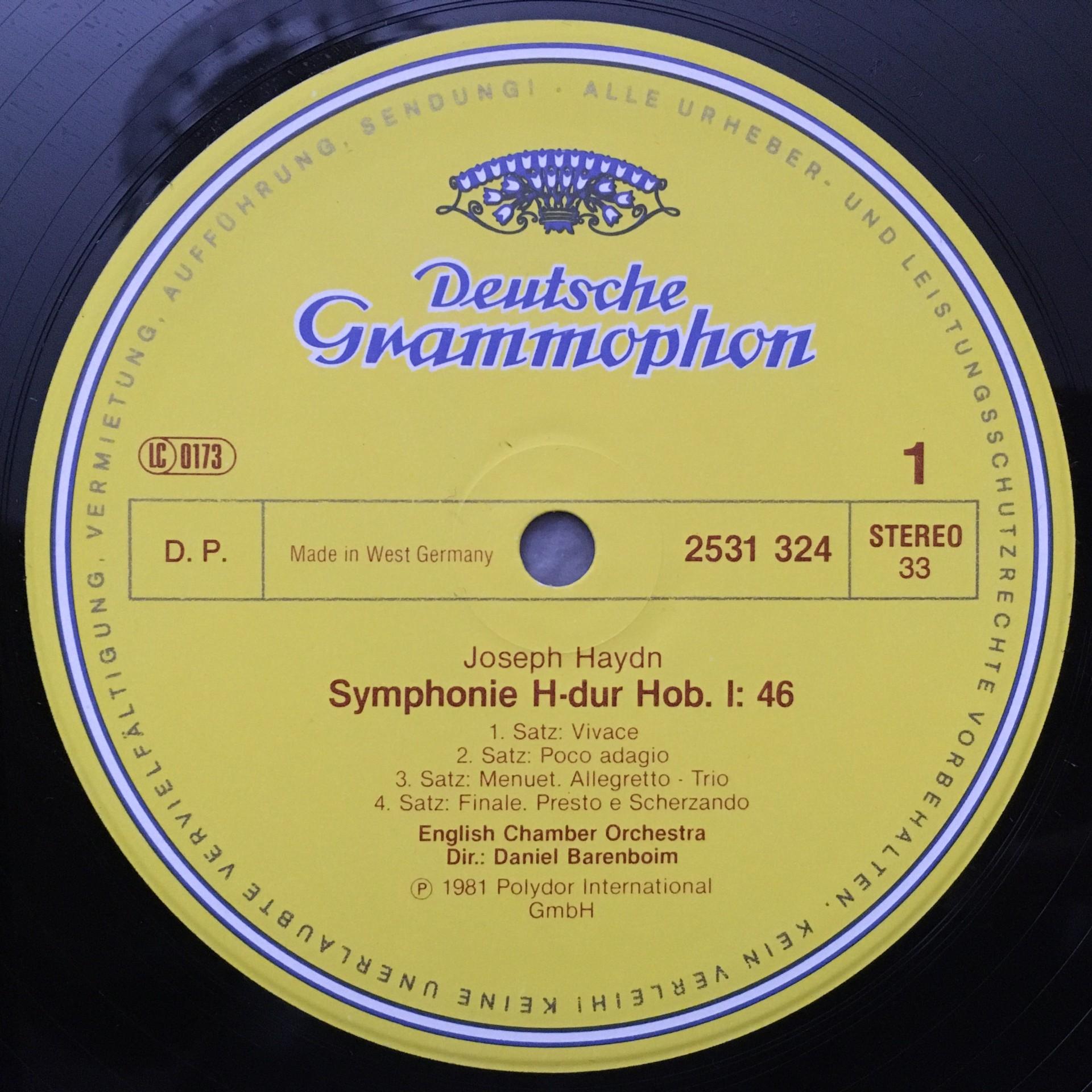 O207 Haydn Symphonies No.46 & No.47 Barenboim DGG 2531 324 Stereo