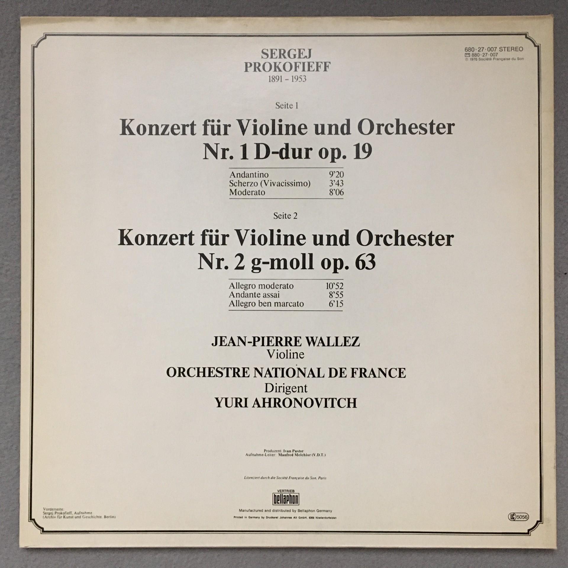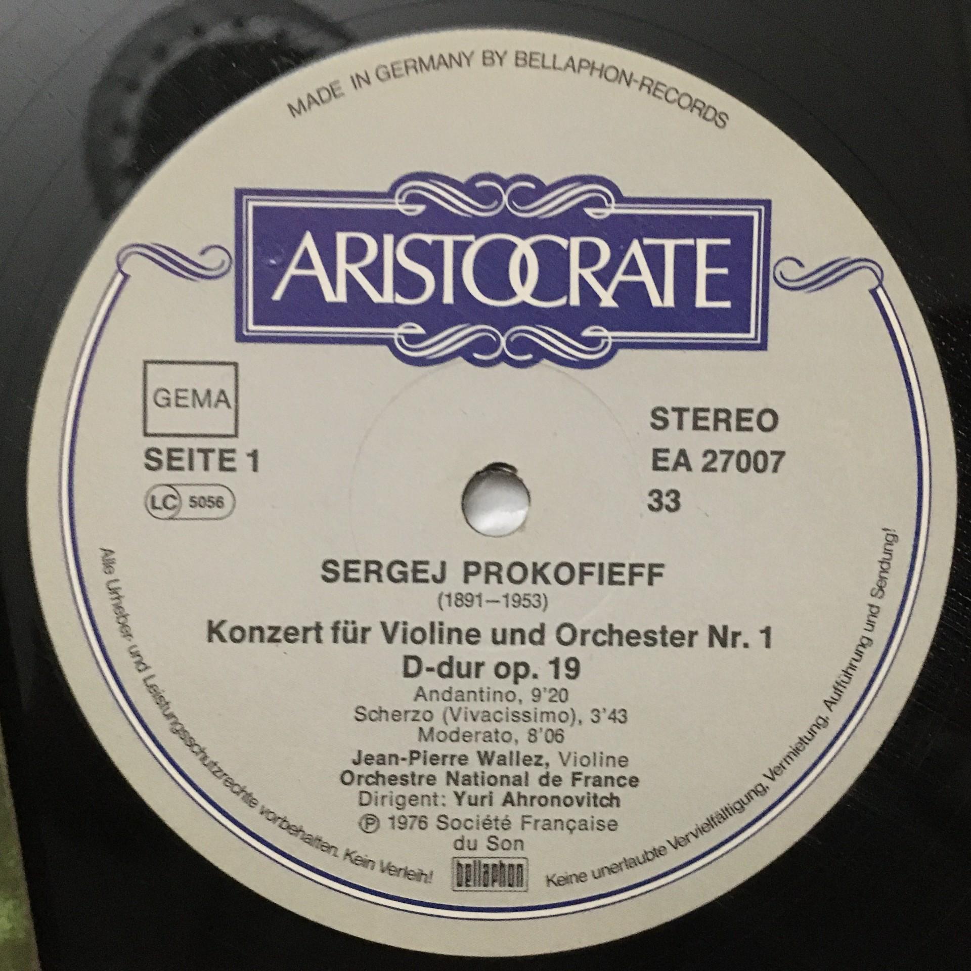 O218 Prokofiev Violin Concertos Wallez Ahronovitch Aristocrate 680 27 007 Stereo