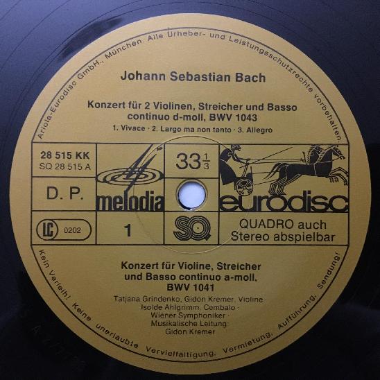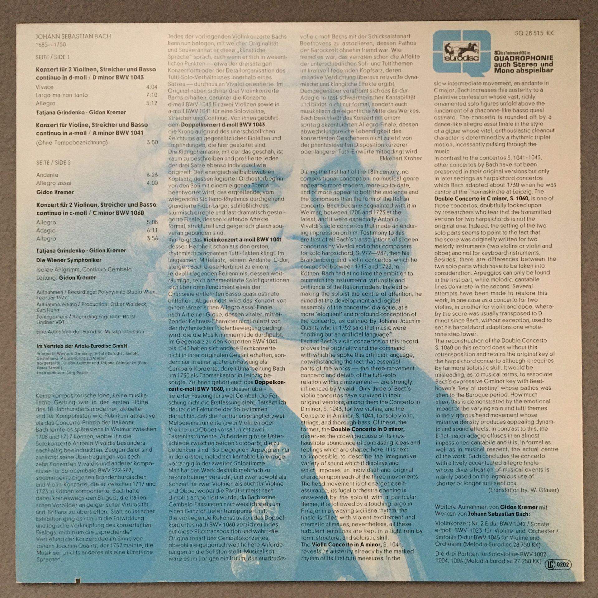 O222 Bach Violin Concertos Kremer Grindenko VSO Eurodisc SQ 28 515 KK Quadro