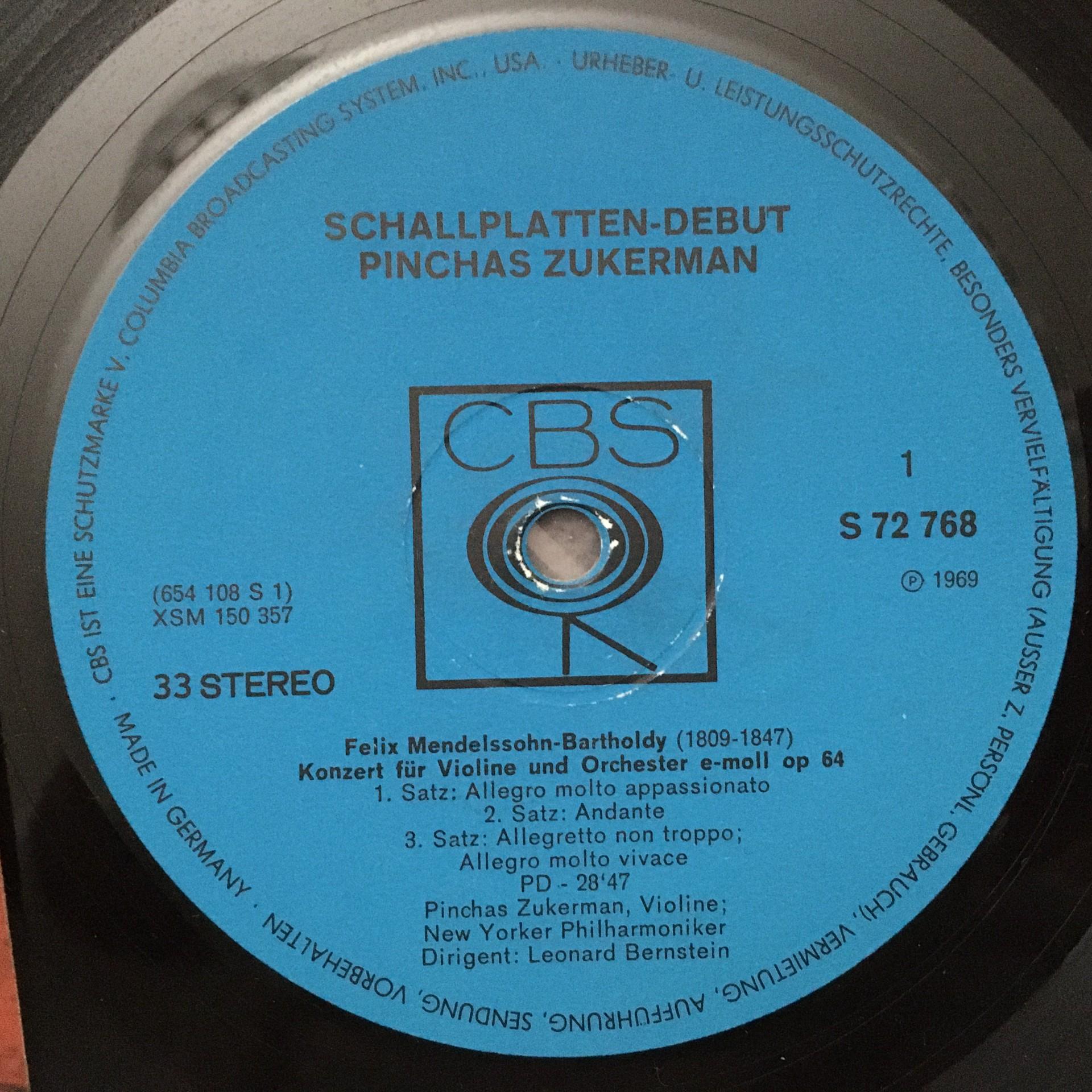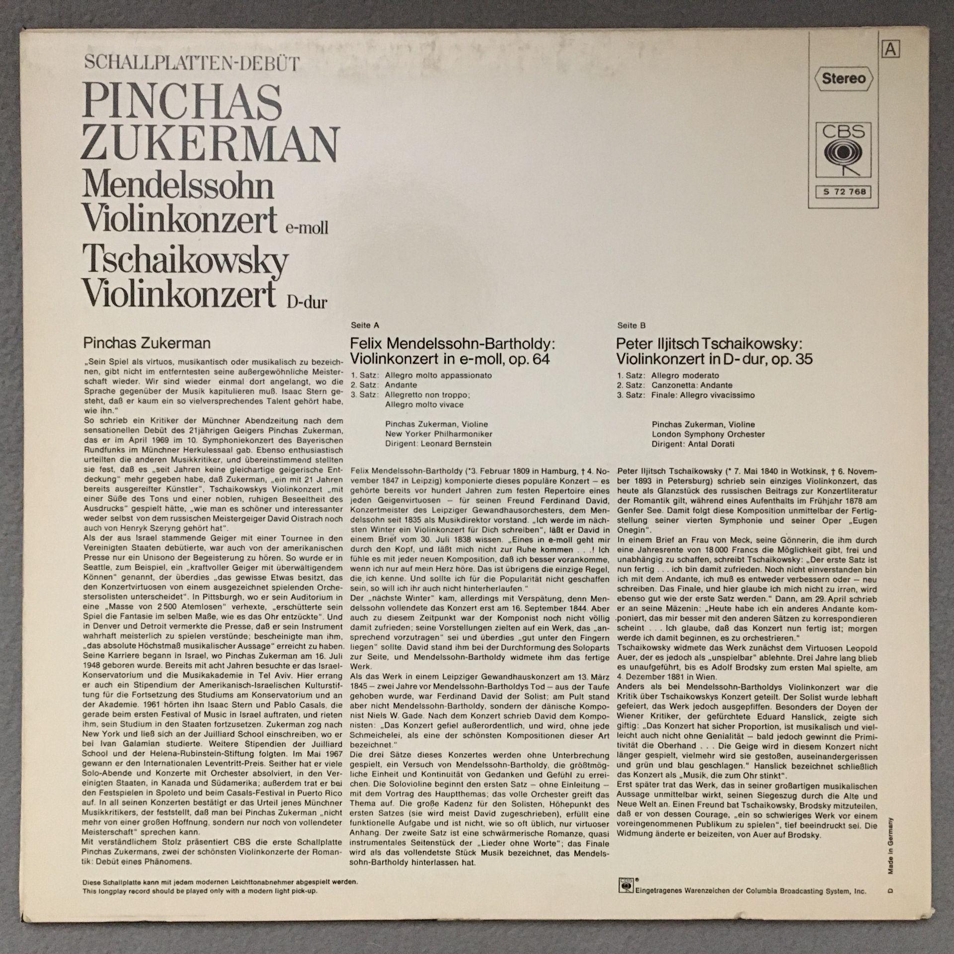 O225 Mendelssohn Tchaikovsky Violin Concertos Zukerman Bernstein CBS S 72 768 St