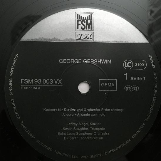 G468 Gershwin Orchestral Works Siegel Slatkin 3LP FSM 93 003 VX Stereo