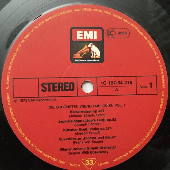 D674 Vienna Melodies J. Strauss Orchestra Boskovsky 3LP EMI 1C 197-54 210/12 St