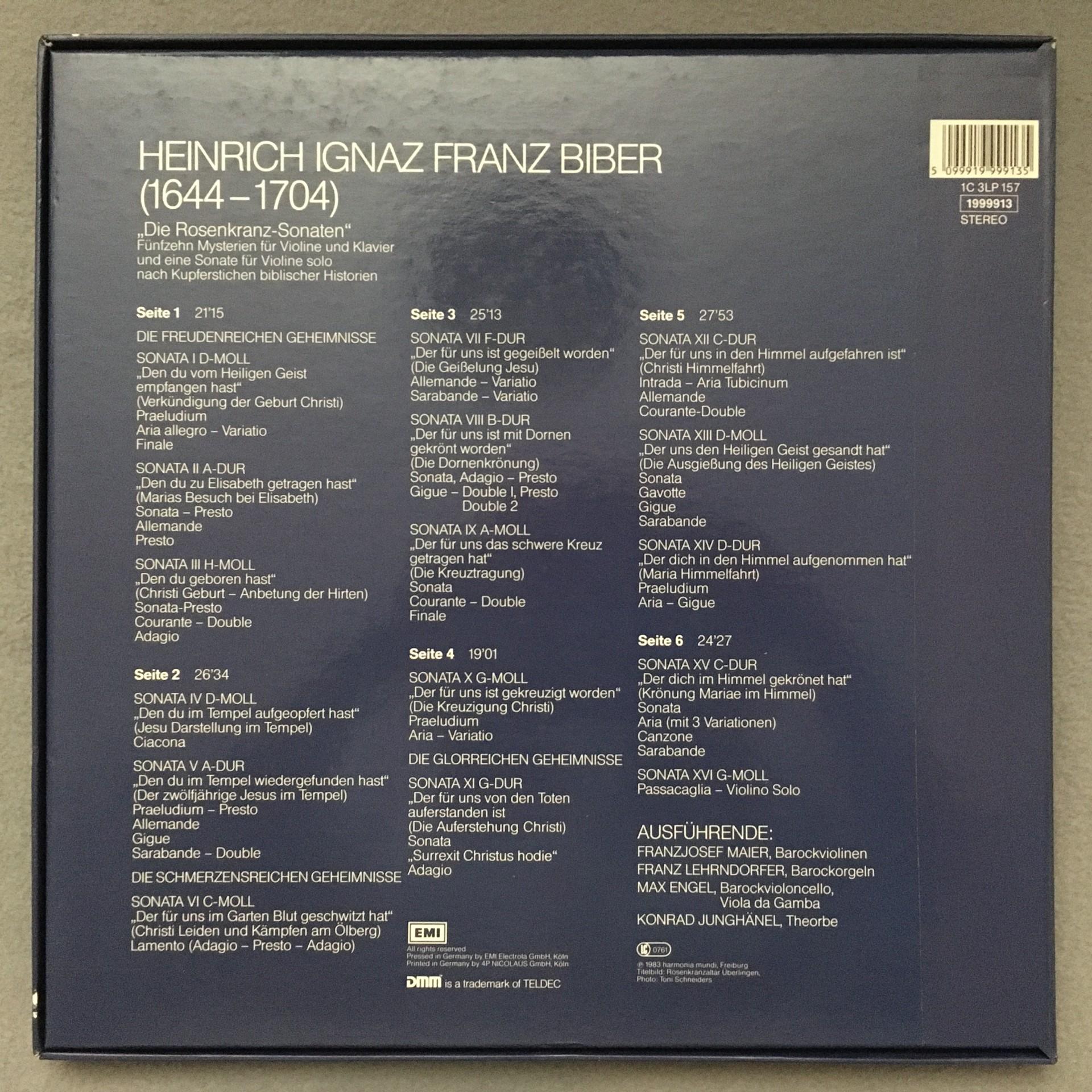 D684 Biber Rosenkranz Sonatas Maier Lehrndorfer 3LP HM 1C 157 1999913Stereo