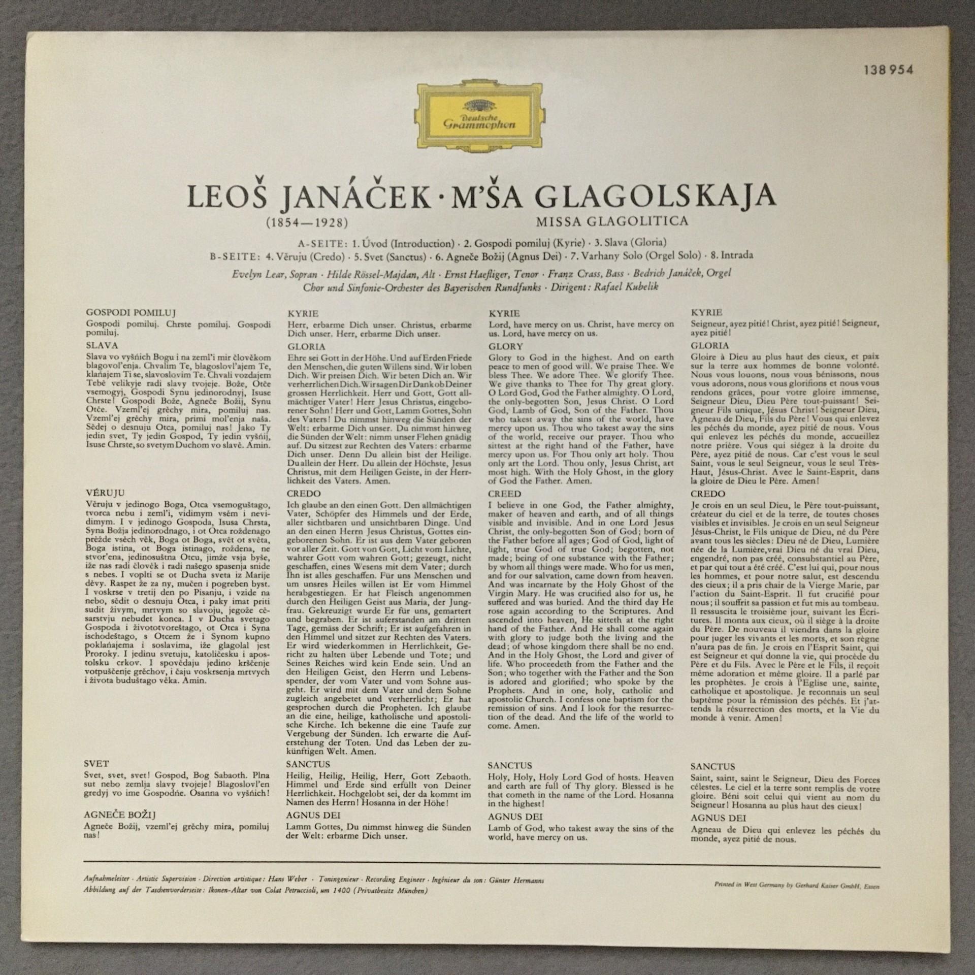 O232 Janacek Missa Glagolitica Lear Haefliger Kubelik DGG 138 954 Stereo