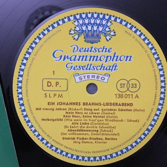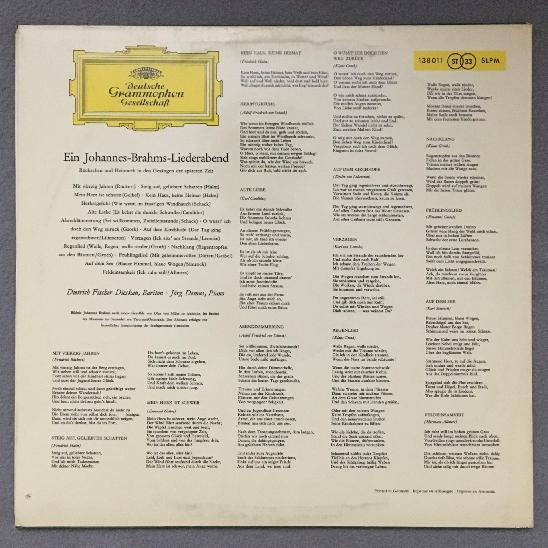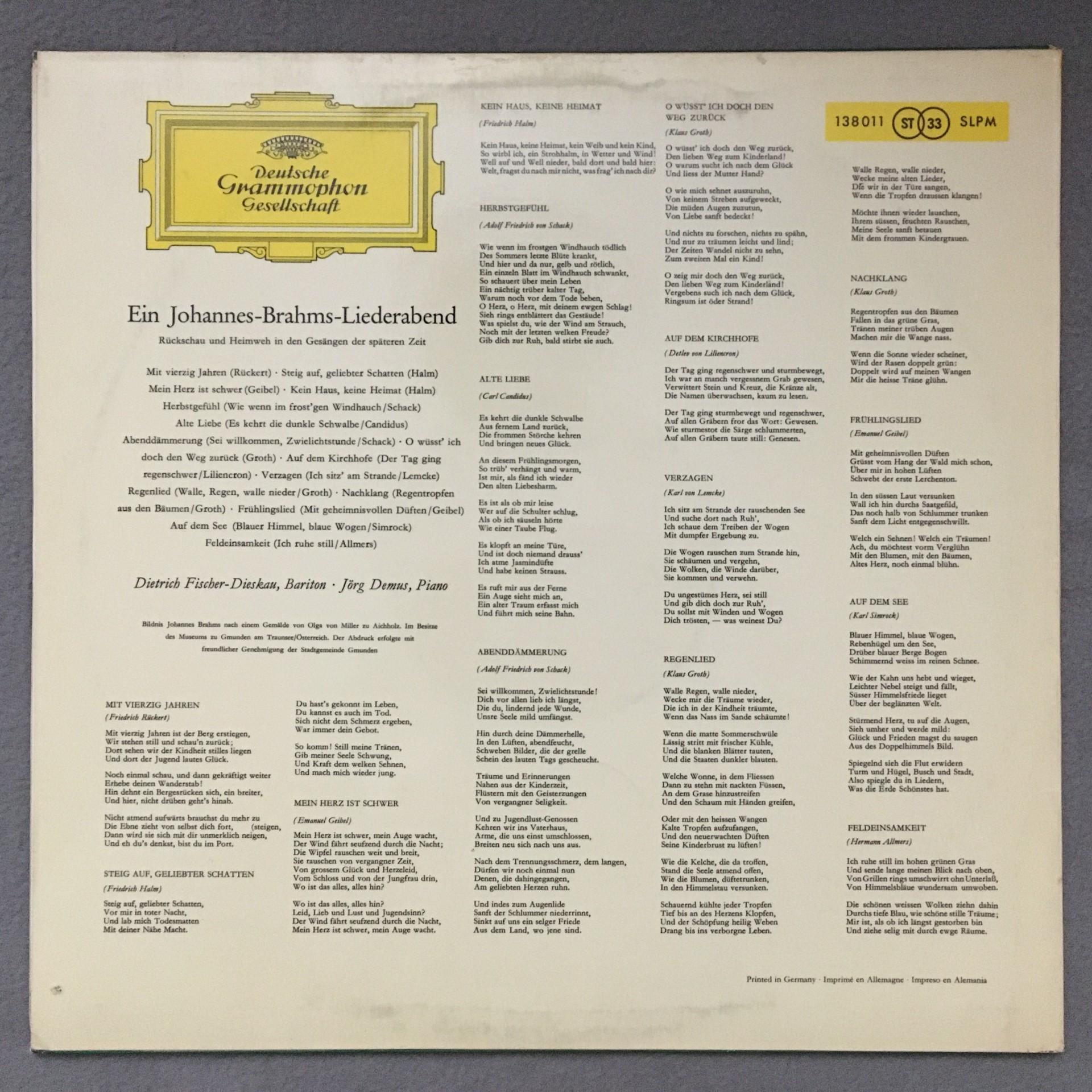 O242 Brahms Liederabend Fischer-Dieskau Demus DGG SLPM 138 011 Stereo Tulip